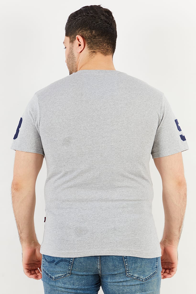 Men V-Neck Short Sleeve Embroidered Logo T-Shirt, Grey
