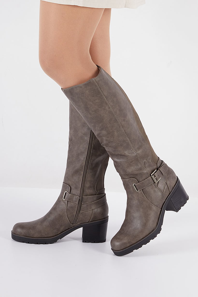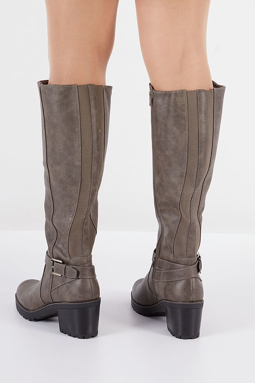 | sub_Categories | Shoes, Boots, women meduim tempist faux leather tall kneehigh boots grey |