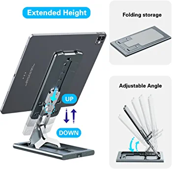 3️⃣ This desk phone stand is adjustable in both height and angle, allowing you to find the perfect ergonomic position for your device. It’s designed to be foldable and portable, making it a versatile option for both phone and tablet use.