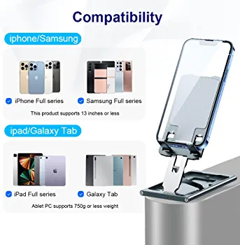 2️⃣ This desktop phone stand is compact yet sturdy, providing a solid base for your phone or tablet. It’s compatible with a wide range of devices, including iPad Pro, Air, Mini, and various generations of tablets.