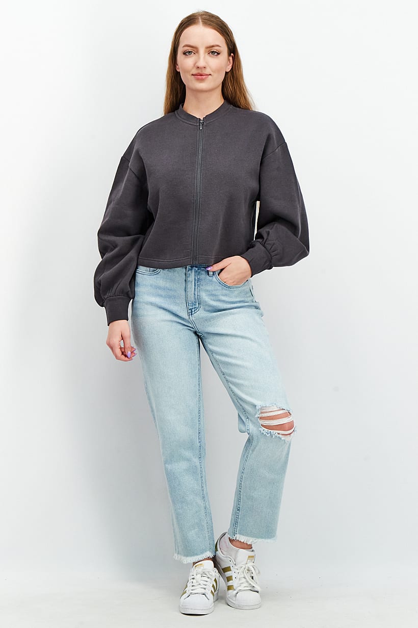 | nameOriginal | Women Crew Neck Full Zip Sweatshirt, Grey |