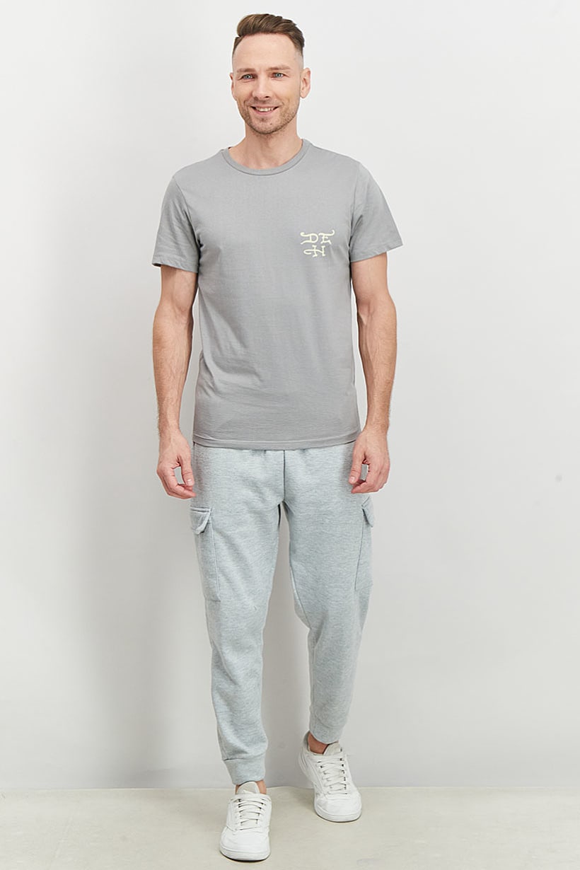 Men Crew Neck Graphic Print Short Sleeve T-shirt, Grey