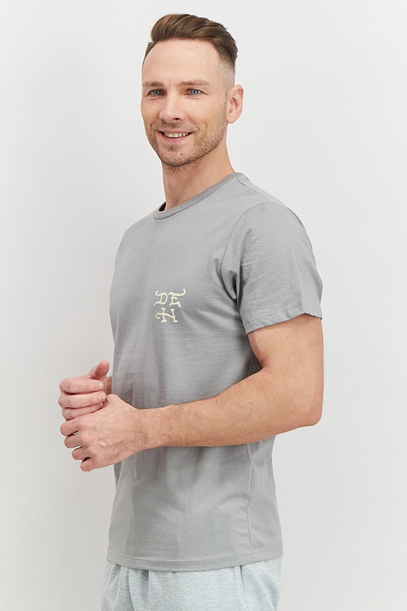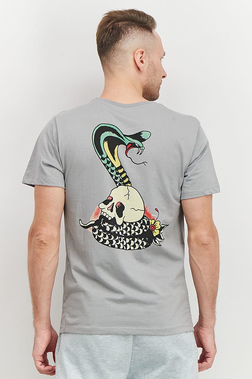 Care : Machine washable, Fit : Regular fit, Size shown : International, Sleeve Length : Short Sleeve, T-Shirt Style : Crew Neck, Type of Hem : Straight hem , Type of Neckline & Collar : Crew neckline , Fabrics : 60% Cotton, 40% Polyester, Occasion : Casual, Pattern & Print : Graphic print, Types of Closures : Pullover, Color Family : Grey,