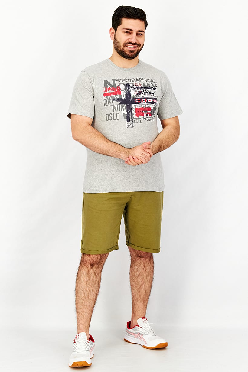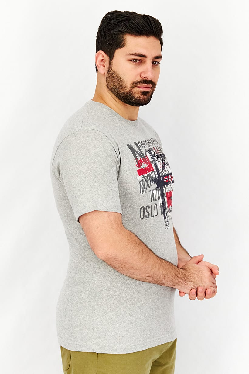 Grey Graphic T-Shirt with Short Sleeves for Men.