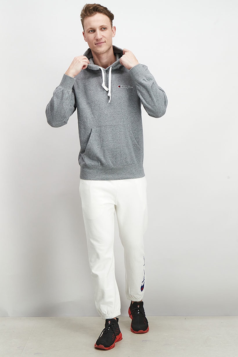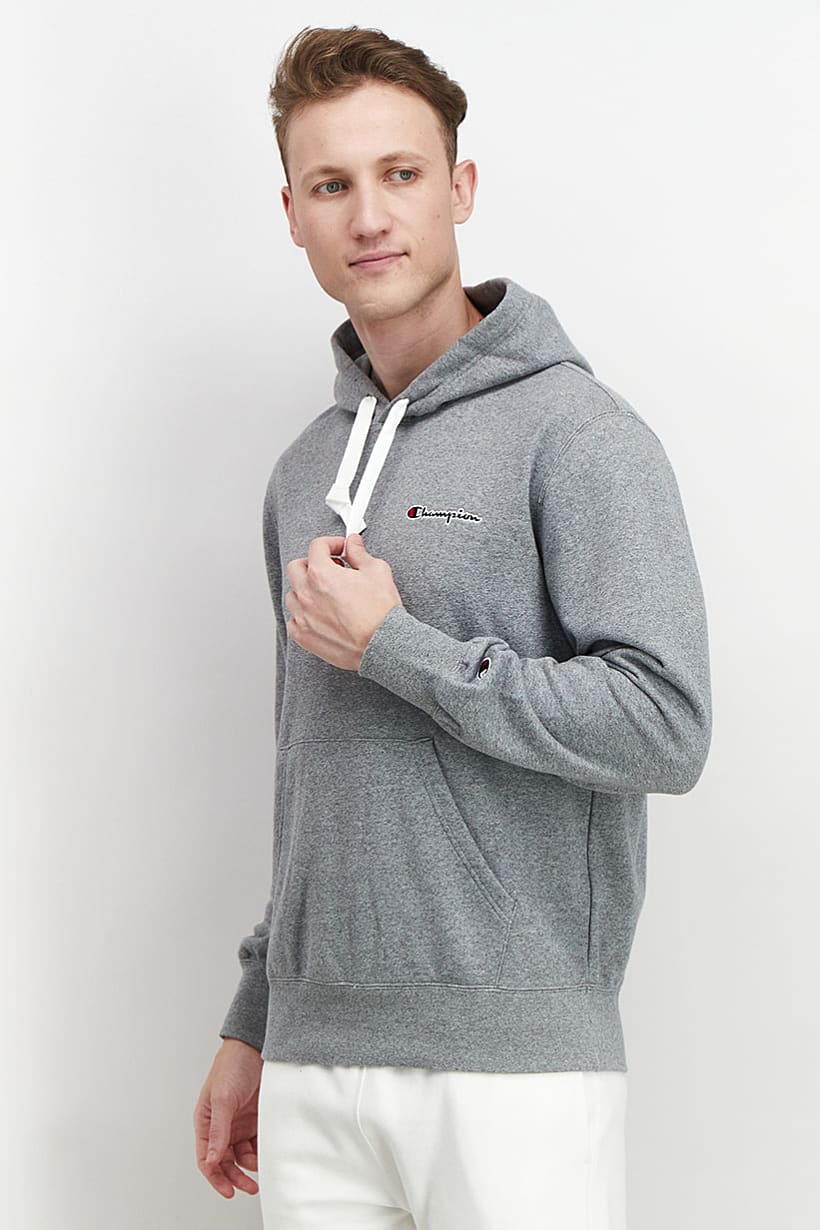 This product is made of 100% cotton and is machine washable. The size shown is international and the sleeve length is long. It has a medium thickness and features a hood with a pullover closure. The embroidered logo adds a stylish touch to the grey color family. This sweatshirt has a sportswear fit and is suitable for running or other sport occasions. Please note that the product color may slightly vary due to photographic lighting sources or monitor settings.