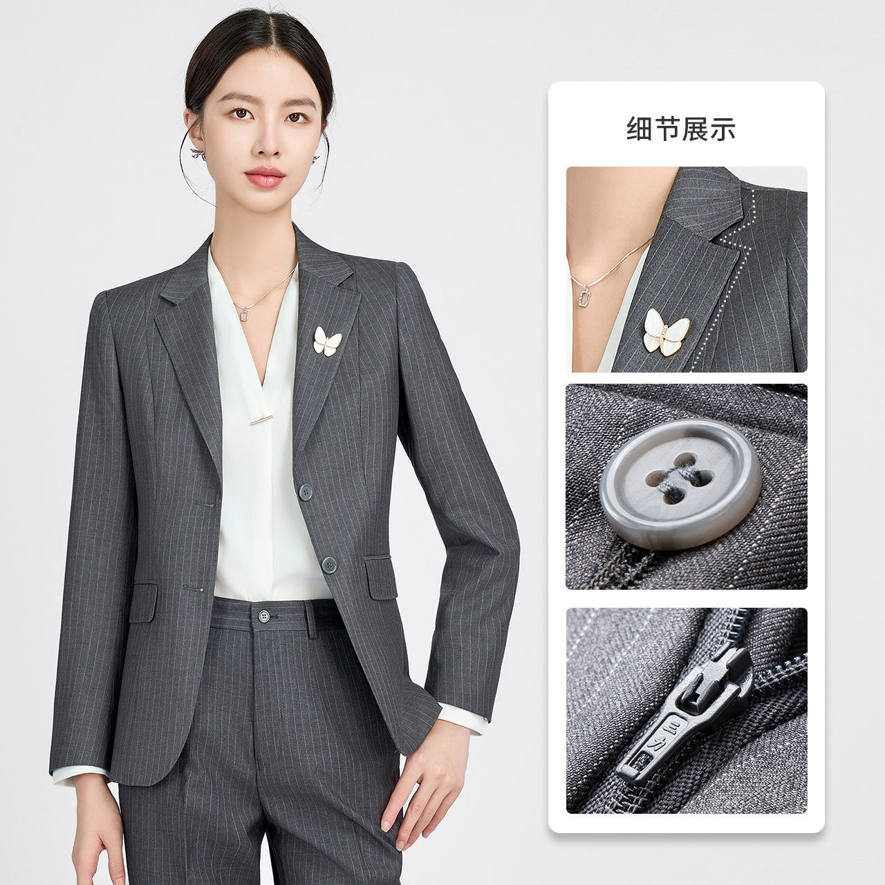 Grey Herringbone Pattern Suit Women’s Suit Women’s Casual Small Suit Men’s and Women’s Same Style Government Civil Servant Business Wear