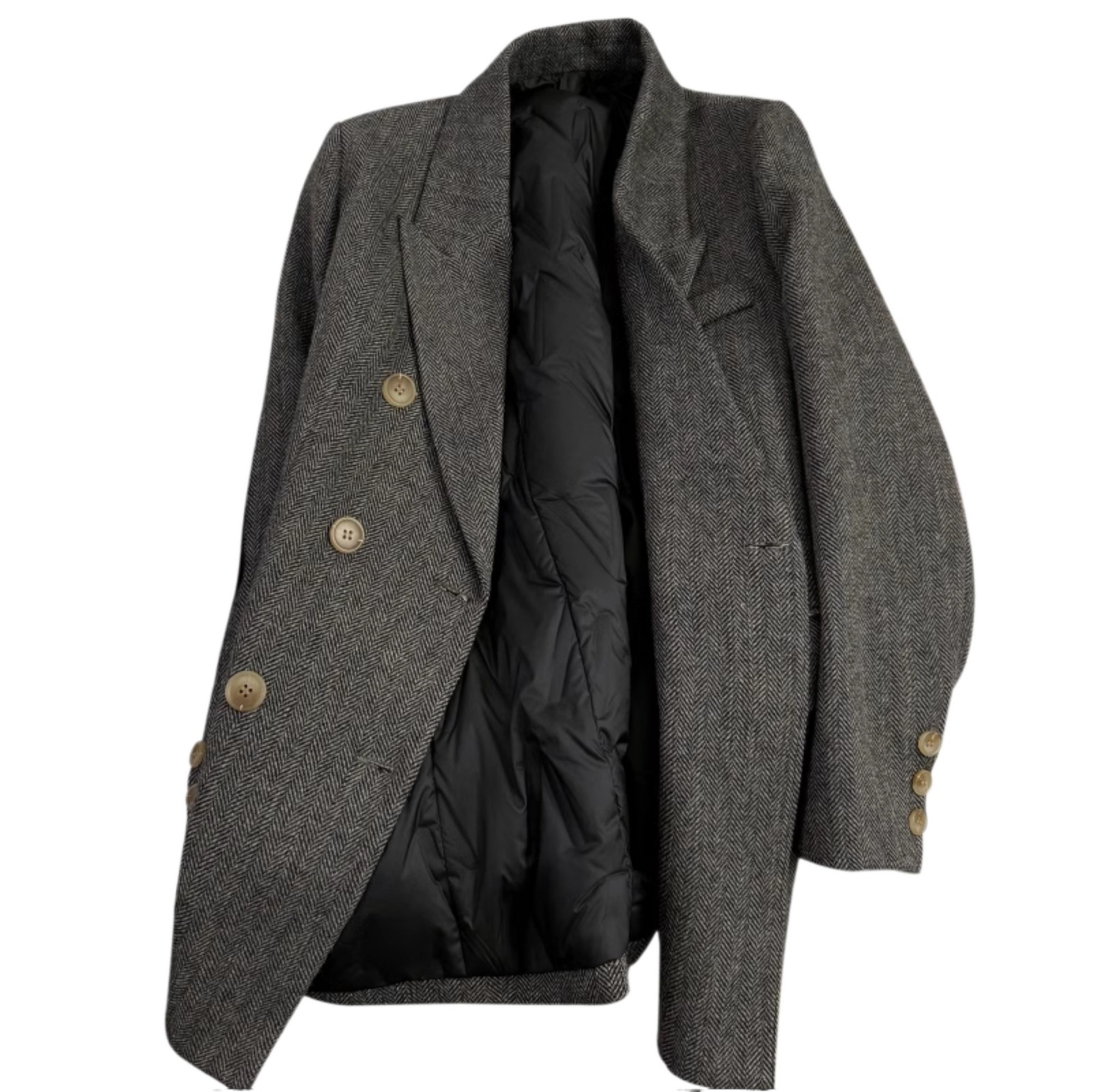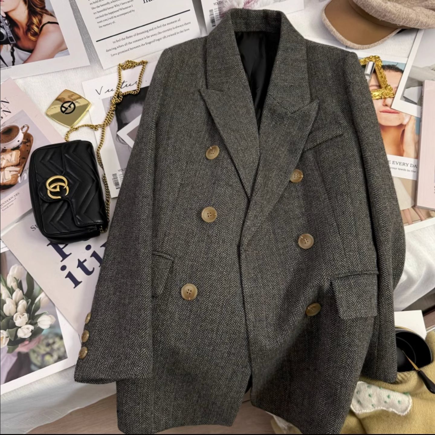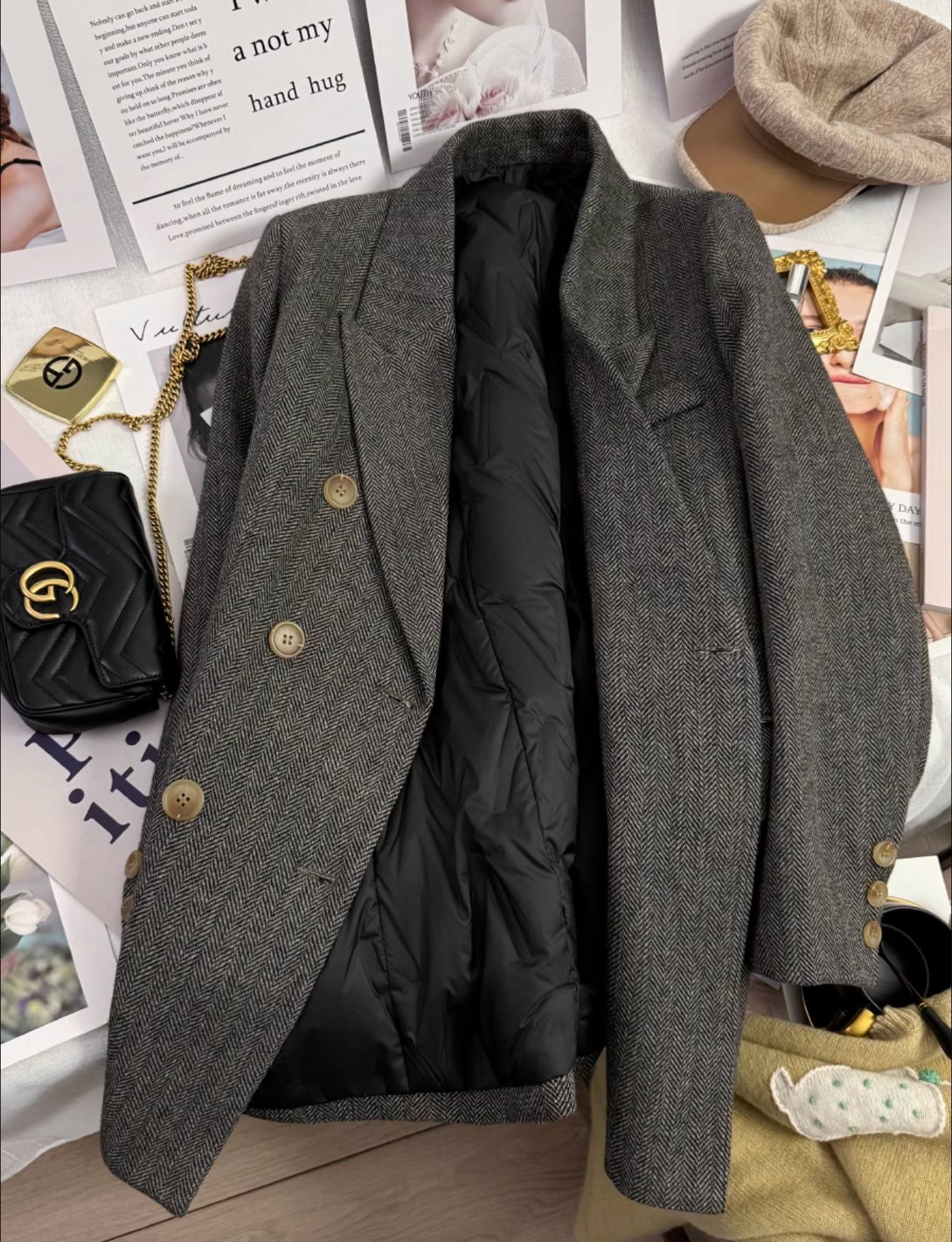 | nameOriginal | Grey Herringbone Woolen British-style Down-lined Small Suit Jacket Women's 2023 New Winter Warm Suit |