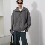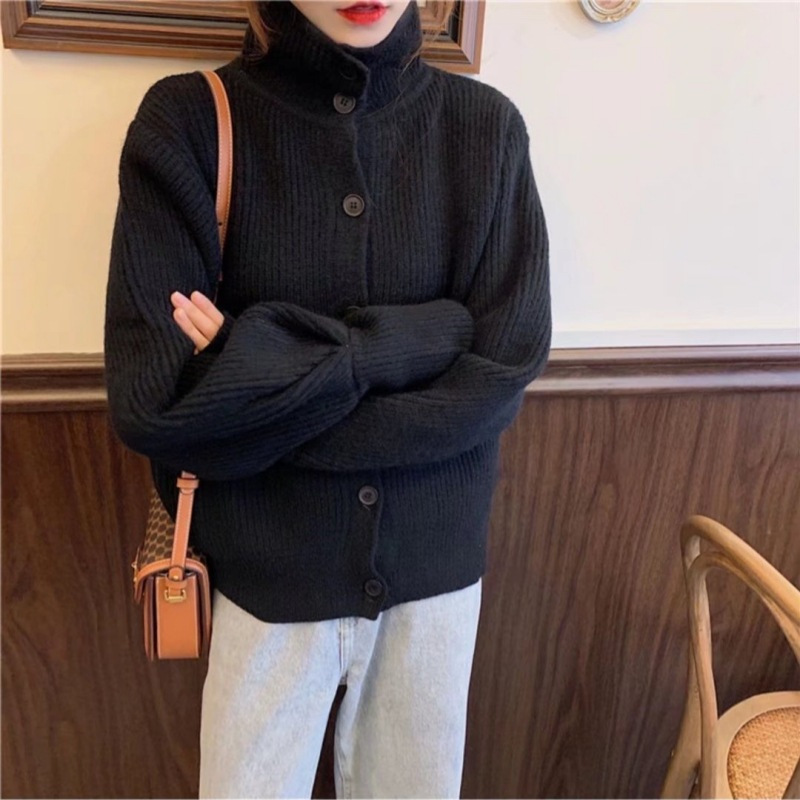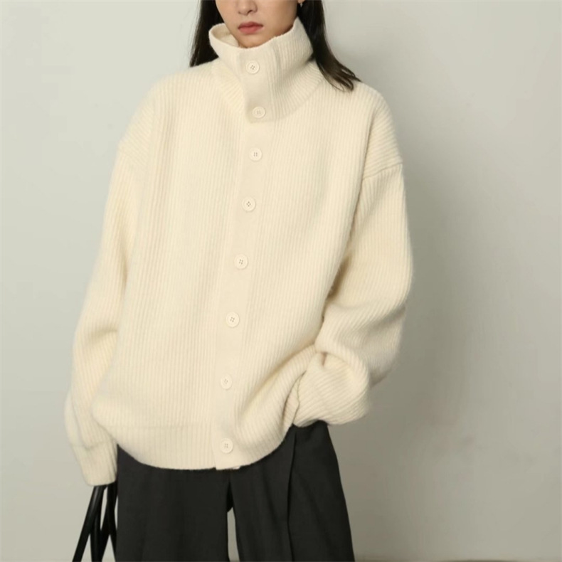 | nameOriginal | Grey High Neck Thick Knitted Cardigan Sweater 2024 New Loose Lazy Style Autumn and Winter Top Solid Color Jacket |