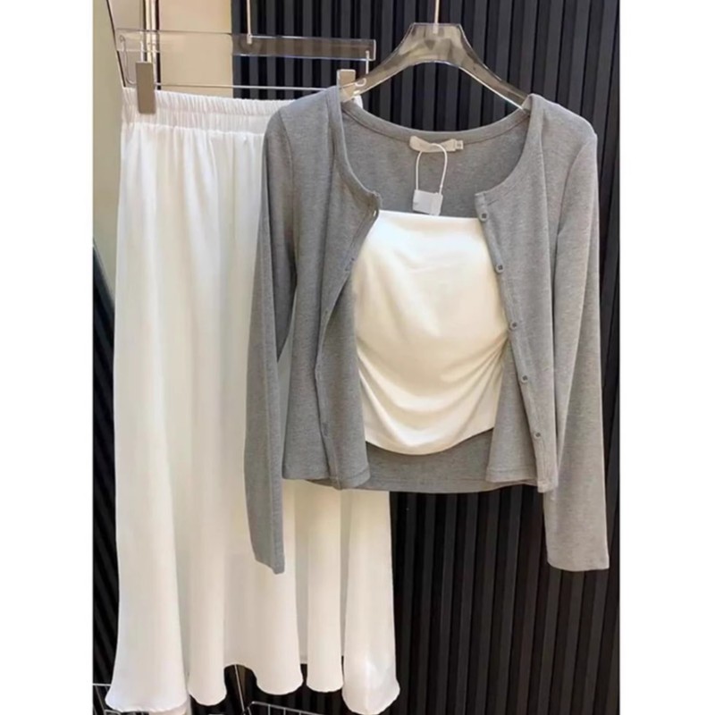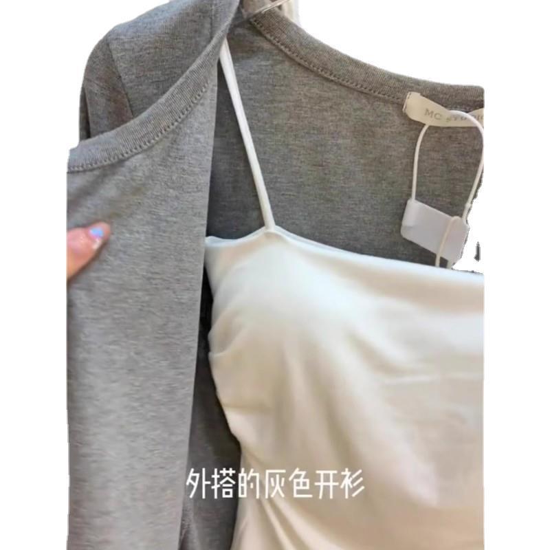 | nameOriginal | Grey Ice Silk Knitted Sunscreen Cardigan Women's Thin Shawl Summer Slip Skirt Short Blouse Two-piece Top |