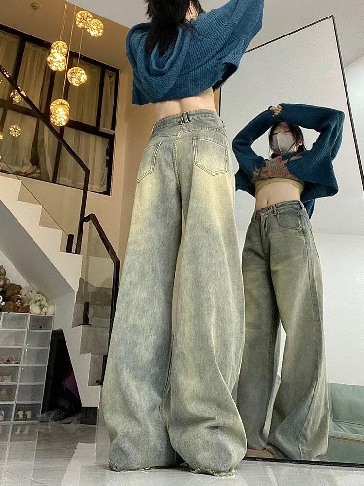 | nameOriginal | Grey Jeans Women's Summer New American Style Retro Loose Niche All-match High Waist Straight Leg Wide-leg Work Pants |