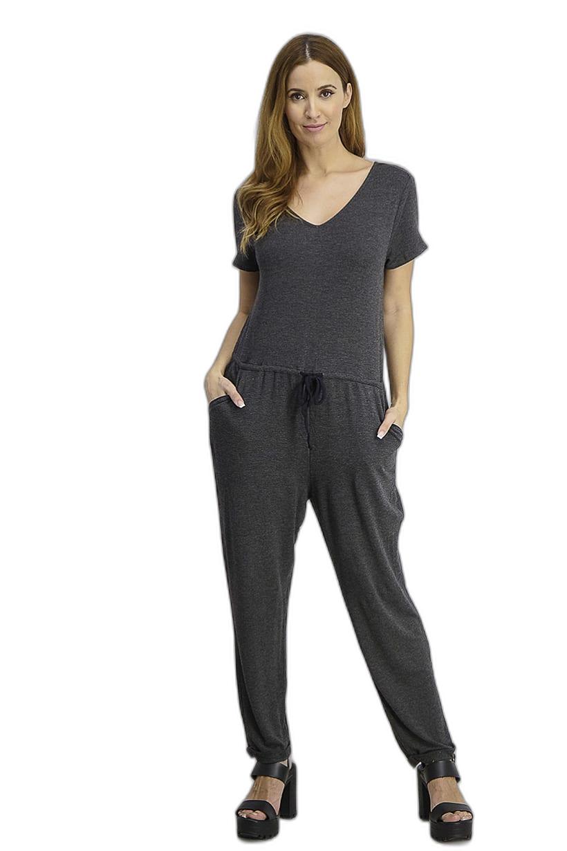 | descriptionOriginal | Size shown : International, Types of Sleeve : Short sleeve, Jumpsuit Type : Jumpsuits, Disclaimer : Product color may slightly vary due to photographic lighting sources or your monitor settings., Occasion : Casual, Ideal For : Women, Fabrics : 4% Spandex, 96% Rayon, Care : Machine washable, Pattern & Print : Plain/Solid, Types of Closures : Pull on, Types of Neckline & Collar : V-neckline, Color Family : Grey, Fit : Regular fit, |