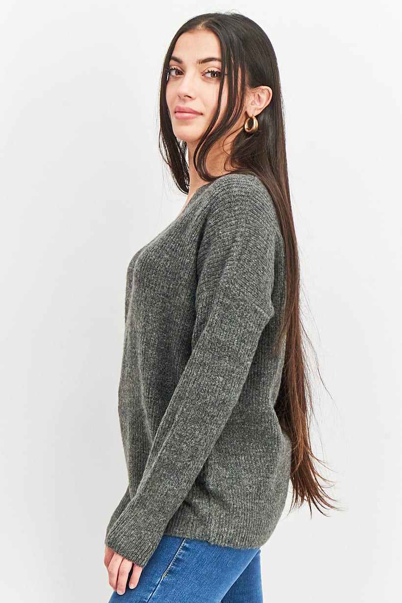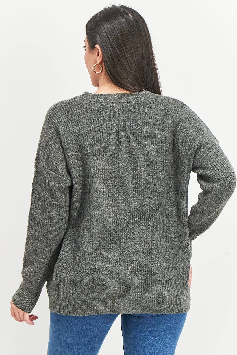 Care : Machine washable, Ideal For : Women, Size shown : International, Sleeve Length : Long Sleeve, Sweater Style : Sweaters, Thickness : Light, Types of Hem : Straight hem, Types of Neckline & Collar : V-neckline, Types of Sleeve : Longsleeve, Disclaimer : Product color may slightly vary due to photographic lighting sources or your monitor settings., Fabrics : 73% Acrylic, 24% Polyester, 3% Elastane, Occasion : Casual, Pattern & Print : Textured pattern, Types of Closures : Pullover, Color Family : Grey,