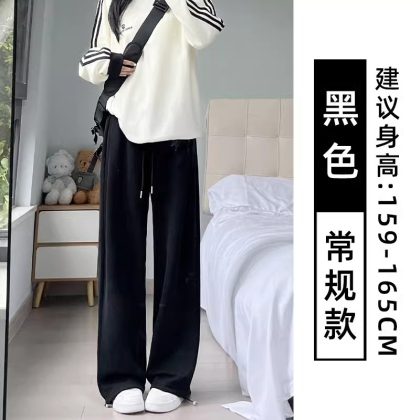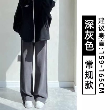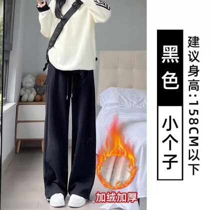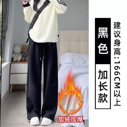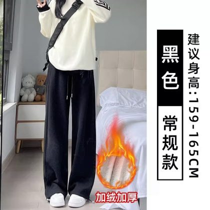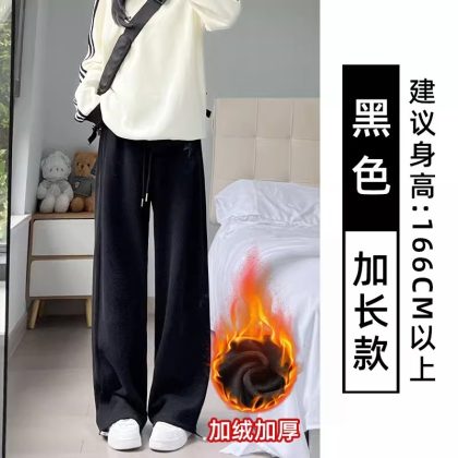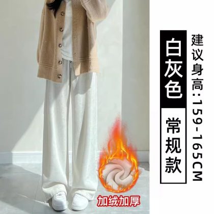 Grey Lamb Fleece Sweatpants Women’s Autumn and Winter High Waist Warm Cotton Pants Casual Wide Leg Pants Small fleece-lined Sweatpants