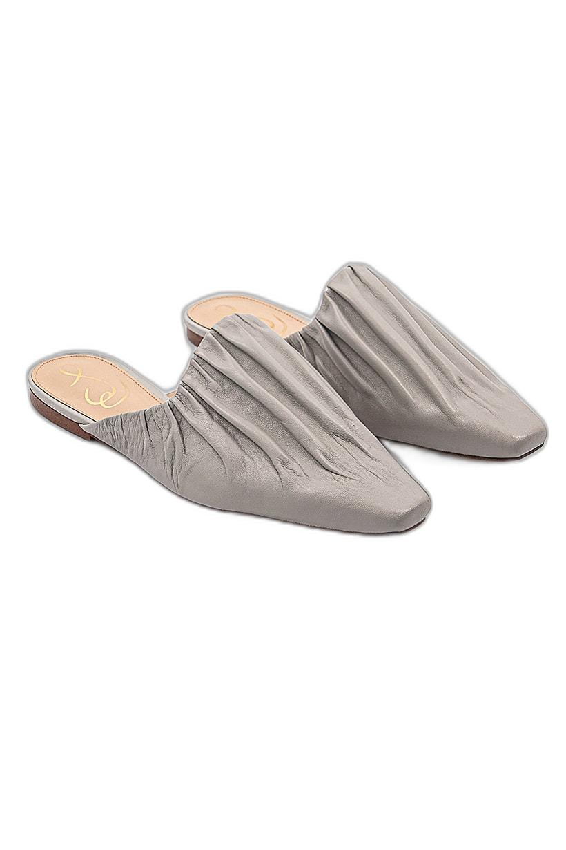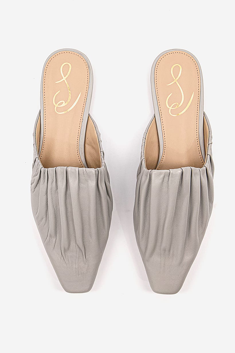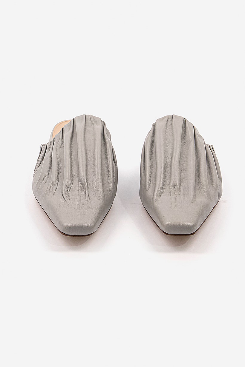 | nameOriginal | Women Cecilia Ruched Flats Mules, Pebble Grey Leather |