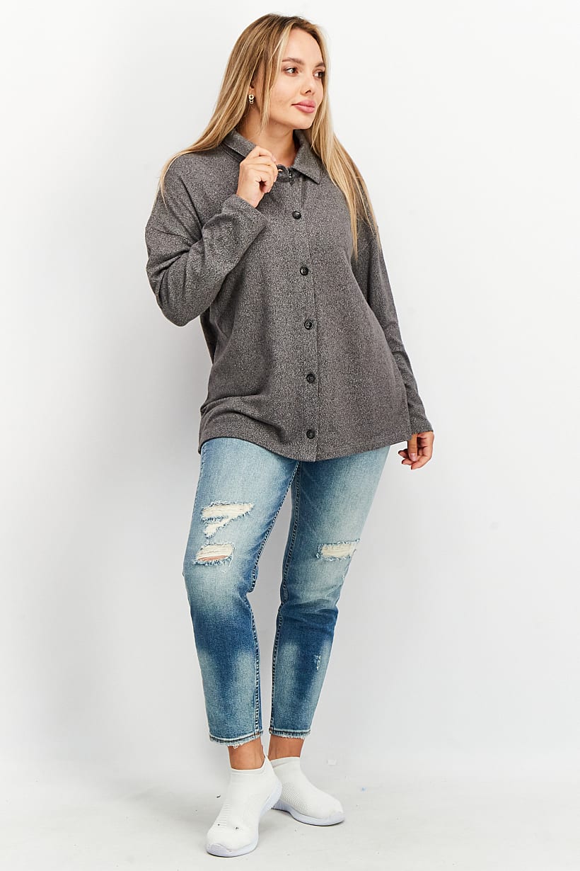 | sub_Categories | Women Clothing, Tops & Tees, women spread collar long sleeve heather top grey |
