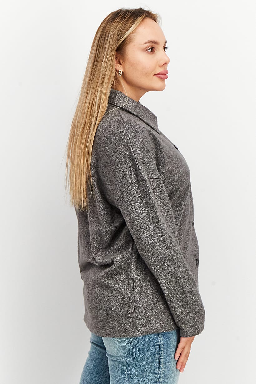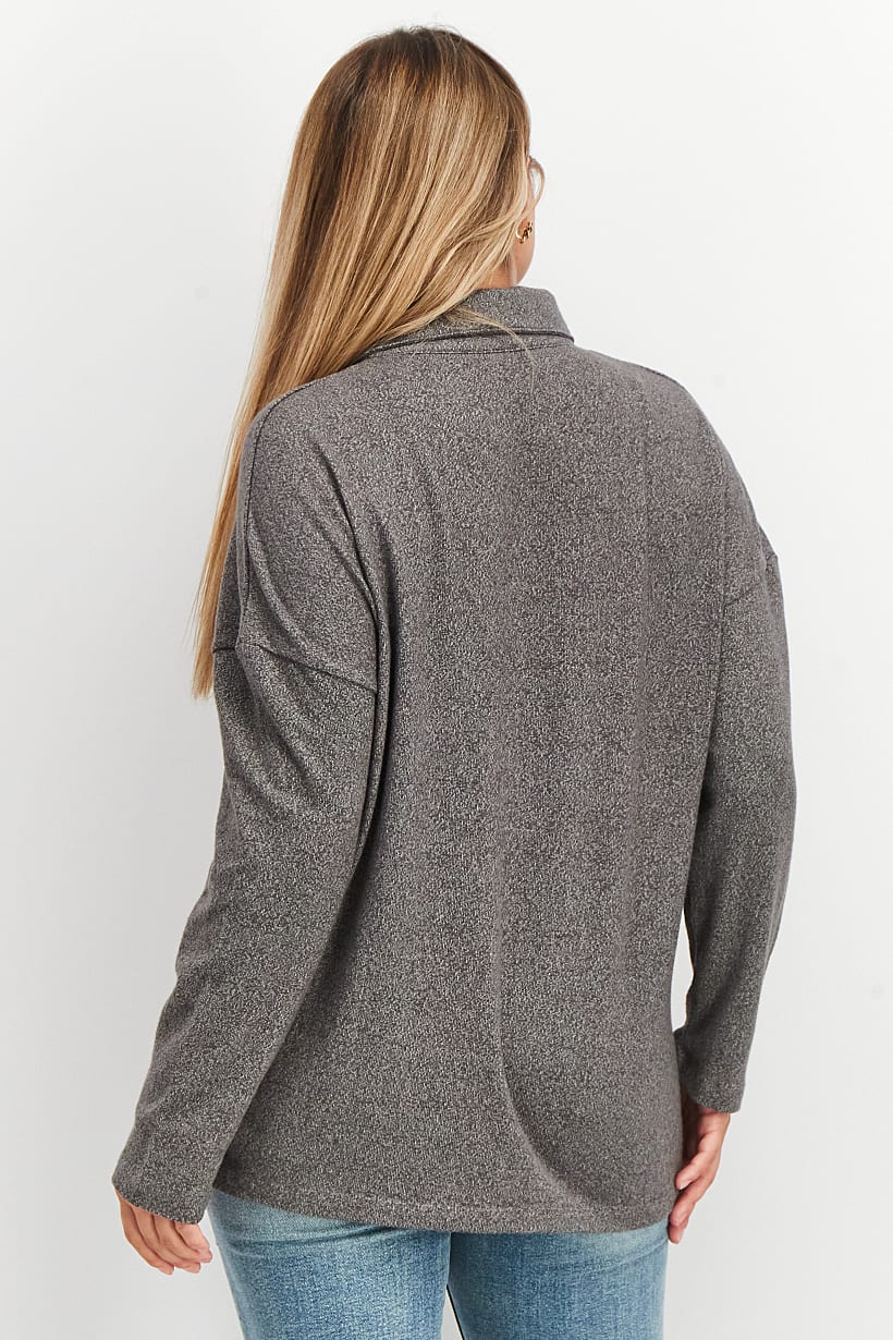 | nameOriginal | Women Spread Collar Long Sleeve Heather Top, Grey |
