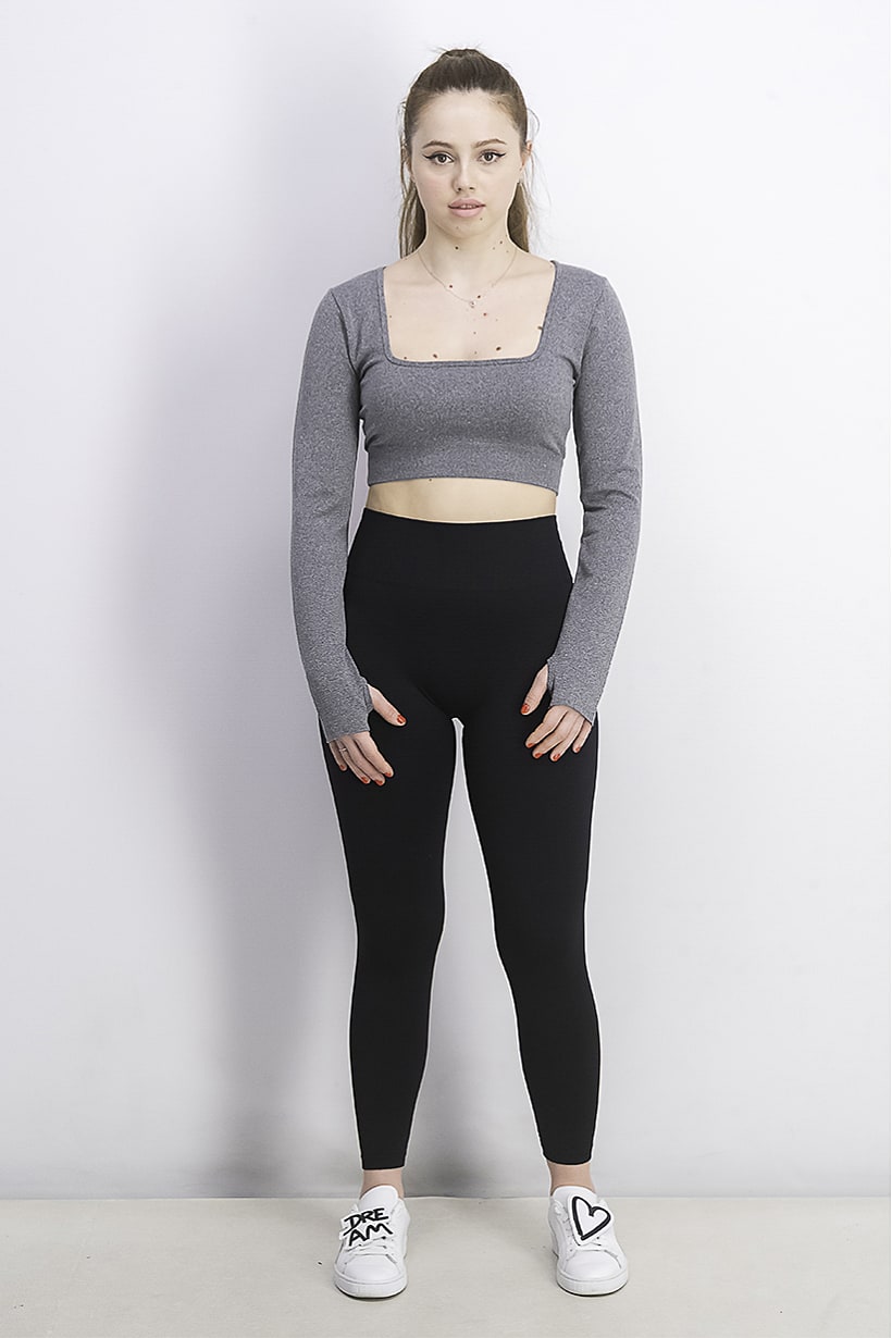 Grey Long Sleeve Tops for Women with Regular Fit.
