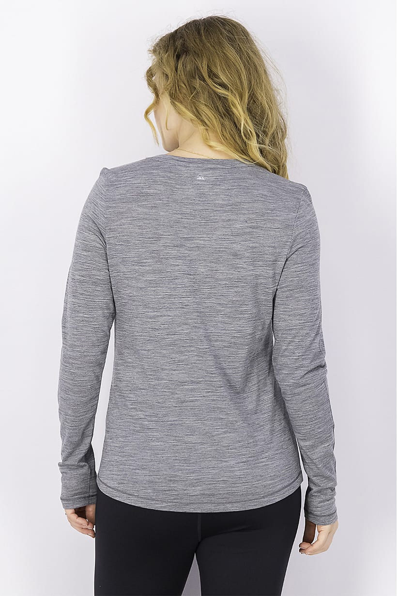 Care : Machine washable, Ideal For : Women, Sleeve Length : Long Sleeve, Type of Sport : Training, Types of Hem : Straight hem, Types of Neckline & Collar : Round neckline, Types of Sleeve : Longsleeve, Disclaimer : Product color may slightly vary due to photographic lighting sources or your monitor settings., Fabrics : 50% Wool, 50% Polyester, Occasion : Sport, Pattern & Print : Heather, Sportswear Type : T-Shirt, Types of Closures : Pullover, Color Family : Grey,