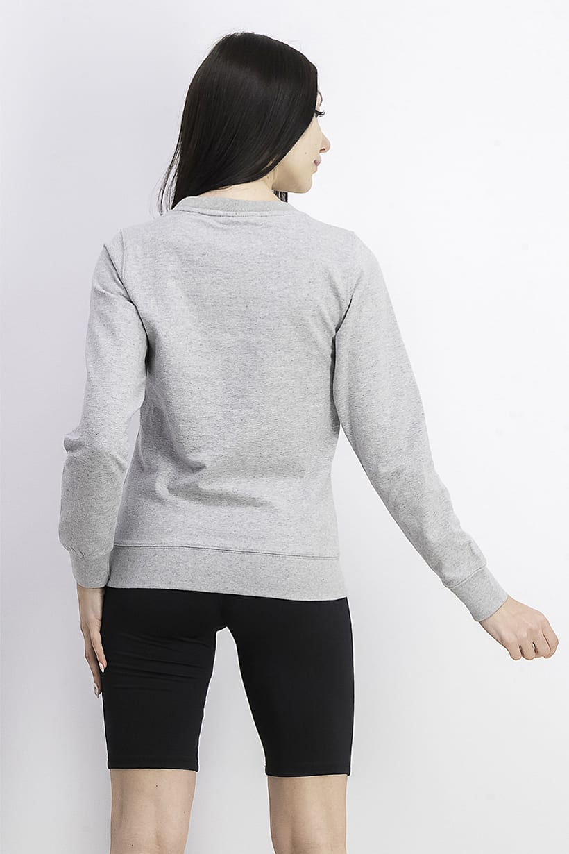 Thickness : Medium, Types of Sleeve : Longsleeve, Sleeve Length : Long Sleeve, Sweater Style : Sweatshirts, Occasion : Casual, Disclaimer : Product color may slightly vary due to photographic lighting sources or your monitor settings., Ideal For : Women, Fabrics : 30% Polyester, 70% Cotton, Care : Machine washable, Pattern & Print : Brand Logo, Types of Hem : Straight hem, Types of Closures : Pullover, Types of Neckline & Collar : Crew neckline, Color Family : Grey, Size shown : International,