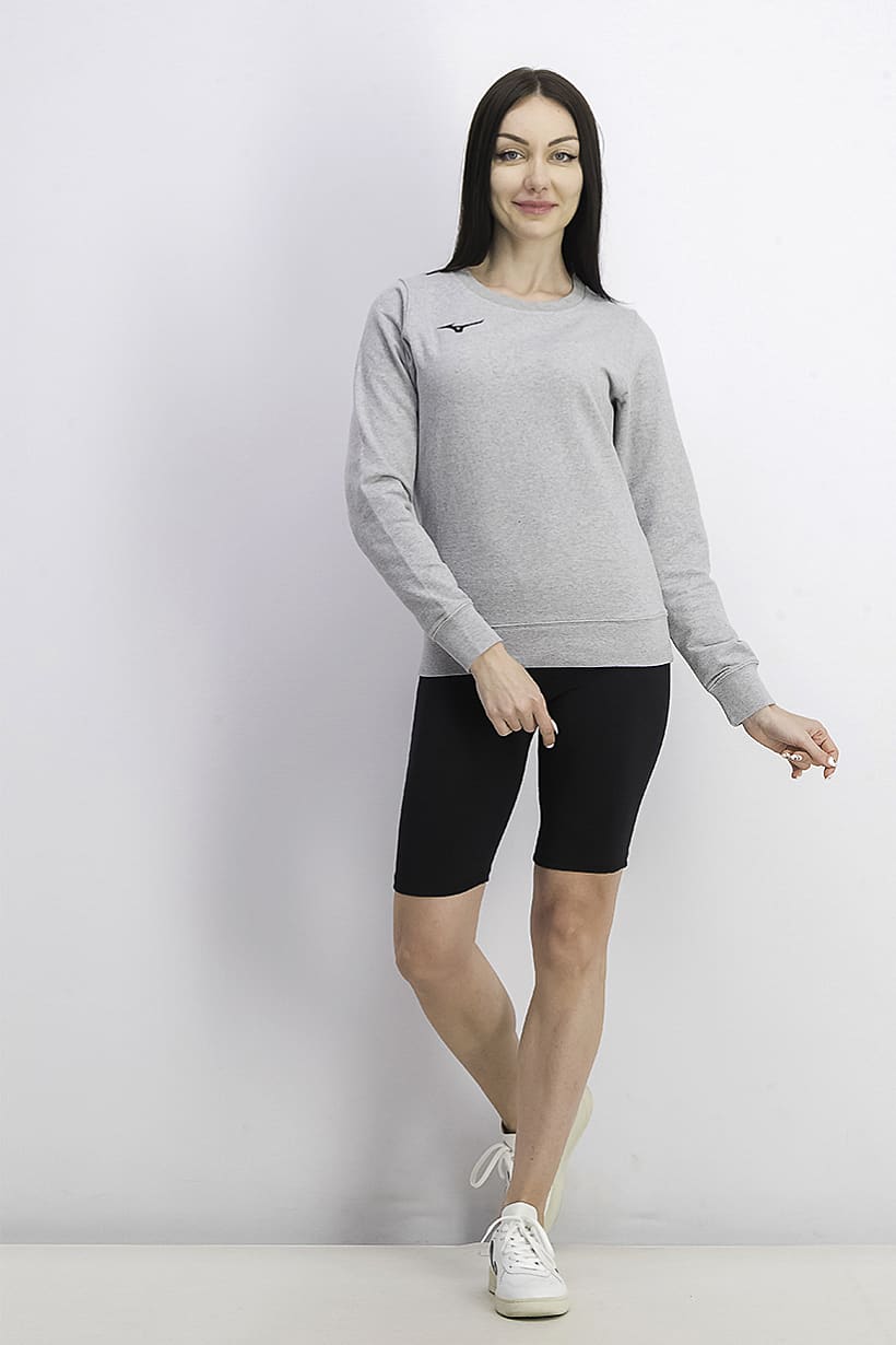 Grey Melange Long Sleeve Terry Sweatshirt for Women with Crew Neckline.