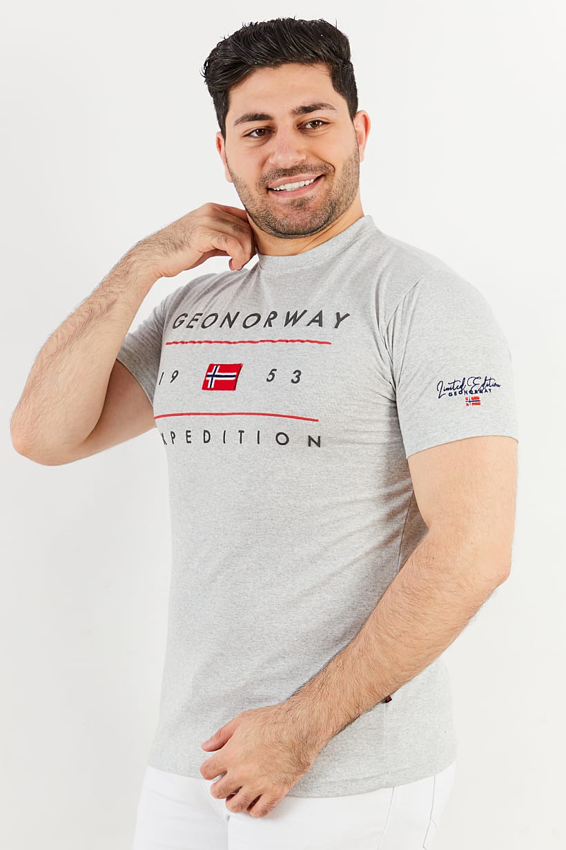 Grey Men’s T-Shirt with Brand Logo, Short Sleeves and Crew Neck.