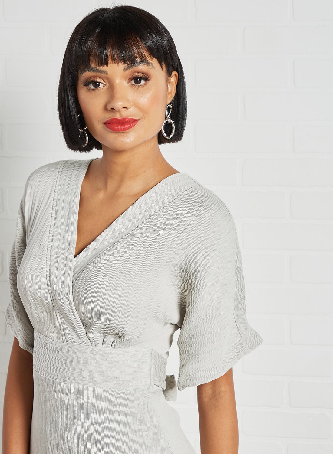 Grey Mini Dress with Kimono Wrap