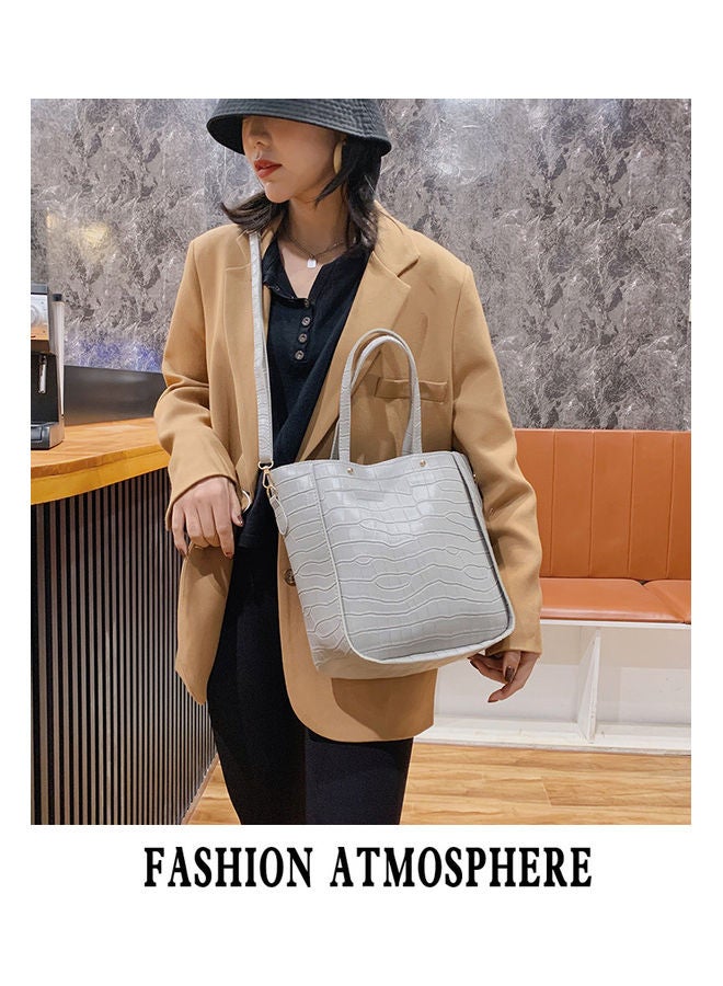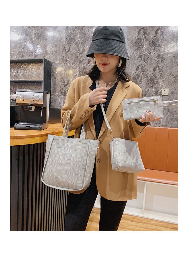 3-Piece Embossed One-shoulder Stylish Handbag Grey