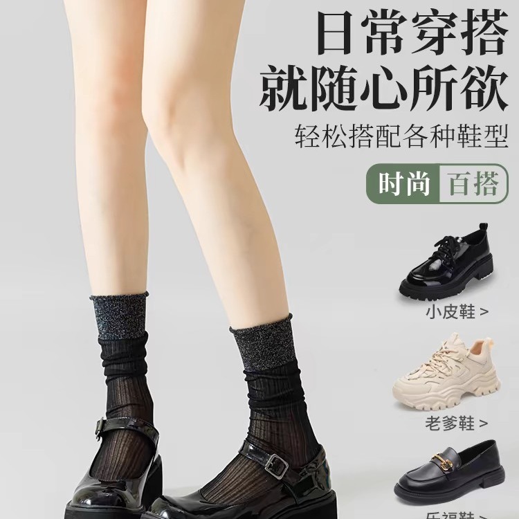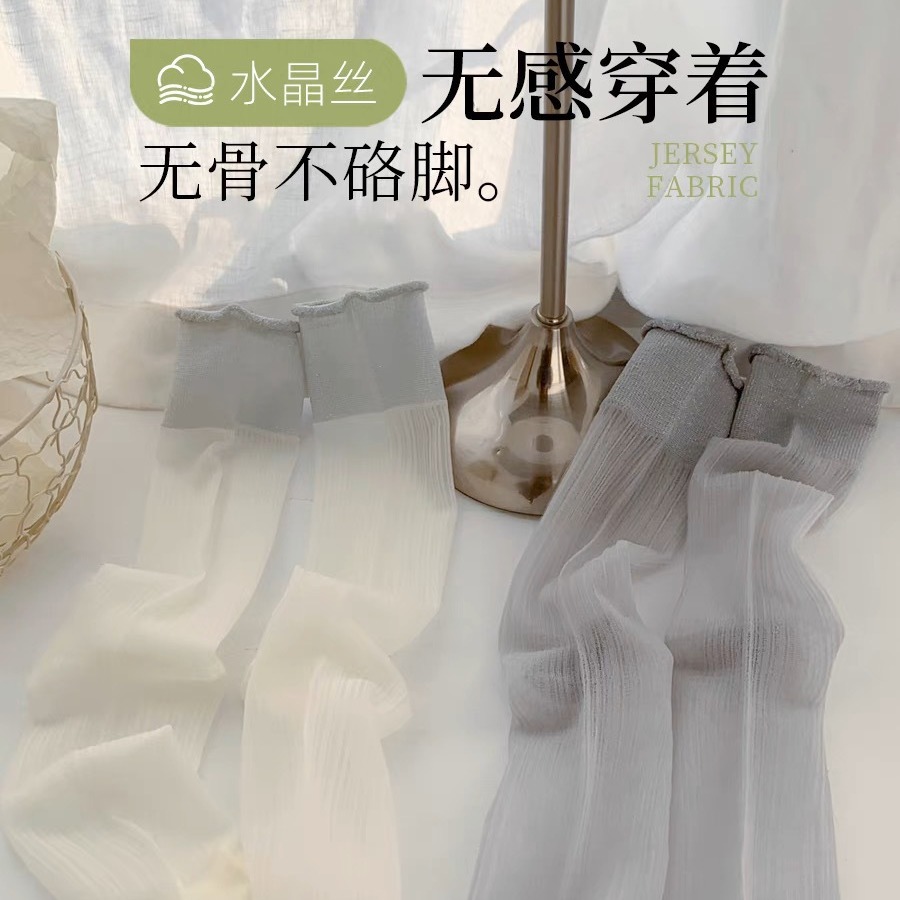 | nameOriginal | Grey Piled Socks Summer Ballet Style Lolita Thin Transparent Stockings Anti-Hook White Glass Silk Mid-Socks |