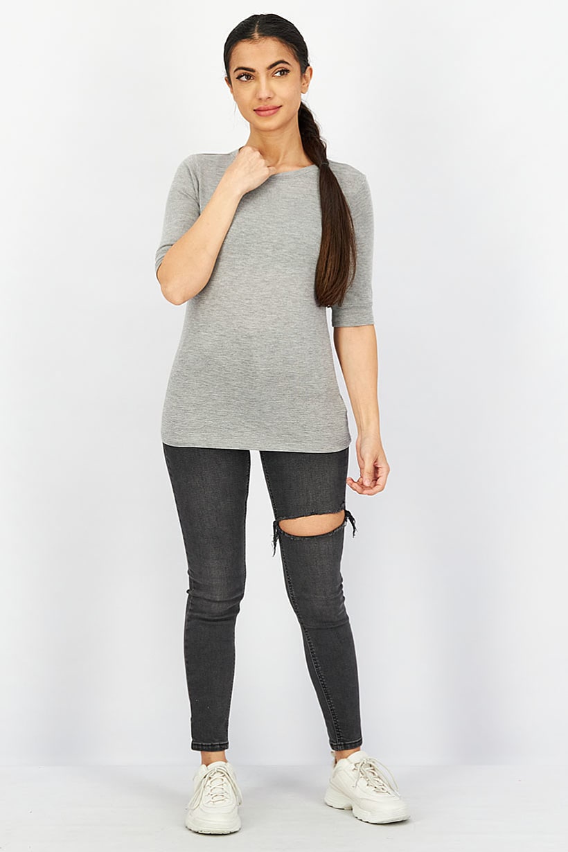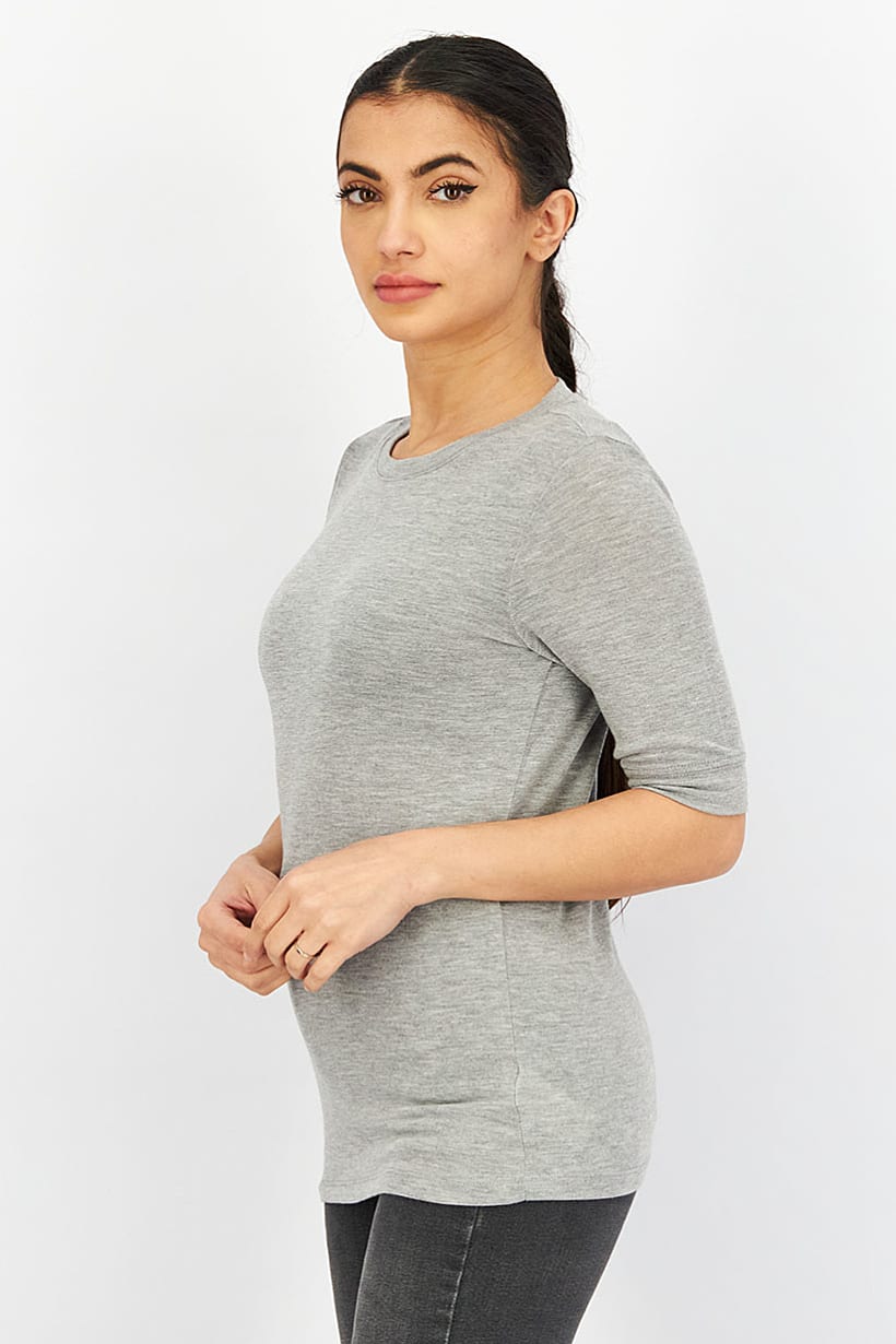 Grey Plain Crew Neck Women’s Shirt.