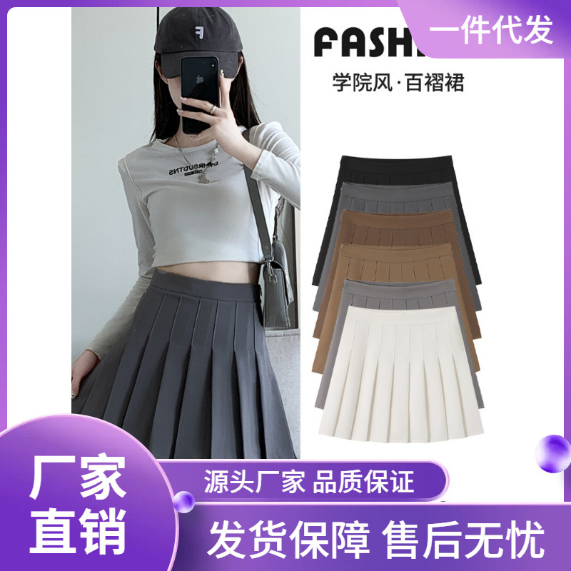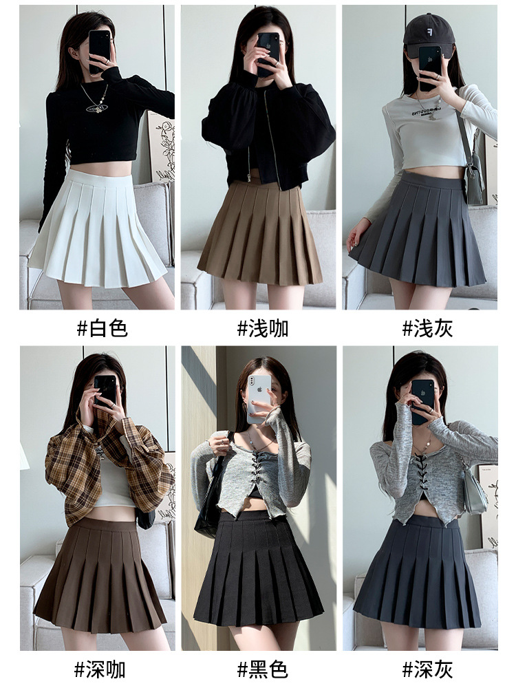 | nameOriginal | Grey Pleated Skirt Women's Spring Autumn and Winter 2024 New High Waist Slimming College Style A- line JK Skirt Skirt |