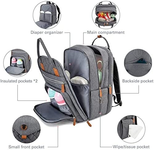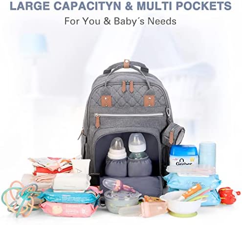 | nameOriginal | Diaper Bag Backpack, Multifunction Waterproof Travel Backpack Baby Nappy Bag with Changing Pad & Stroller Straps & Pacifier Case, Large Baby Bag, Quilted, Grey |