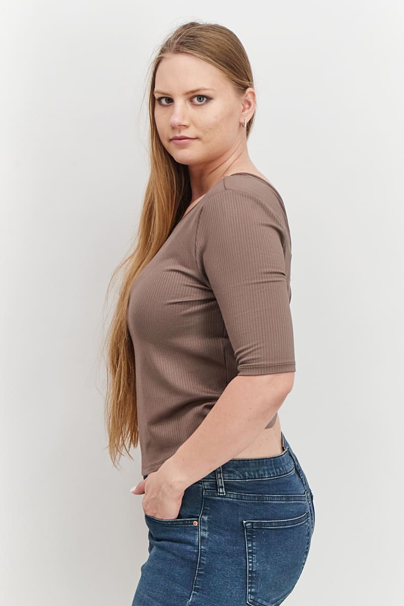 | nameOriginal | Women Round Neck Short Sleeve Ribbed Top, Grey |