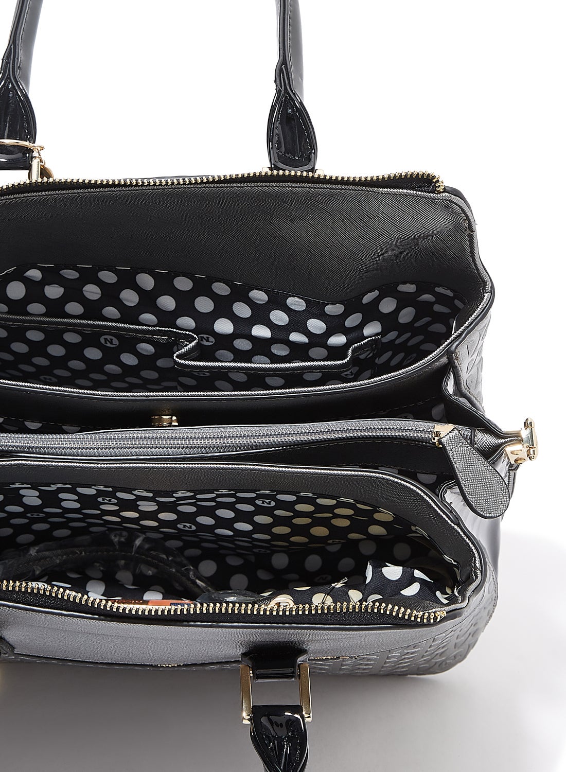 | nameOriginal | Allover Embossed Satchel Bag Grey |