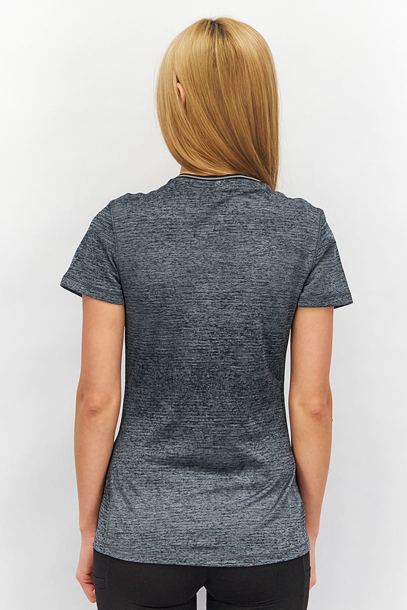 | descriptionOriginal | Care : Machine washable, Fit : Sportswear Fit, Ideal For : Women, Size shown : International, Sleeve Length : Short Sleeve, Thickness : Light, Type of Sport : Training, Types of Hem : Straight hem, Types of Neckline & Collar : Crew neckline, Types of Sleeve : Short sleeve, Disclaimer : Product color may slightly vary due to photographic lighting sources or your monitor settings., Fabrics : 100% Polyester, Occasion : Sport, Pattern & Print : Brand Logo, Textured pattern, Sportswear Type : T-Shirt, Types of Closures : Pullover, Color Family : Grey, |