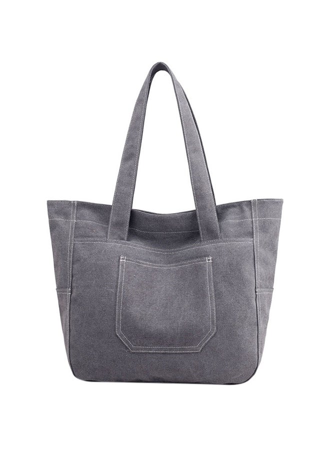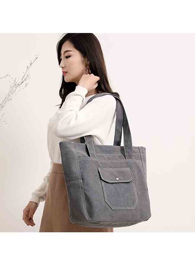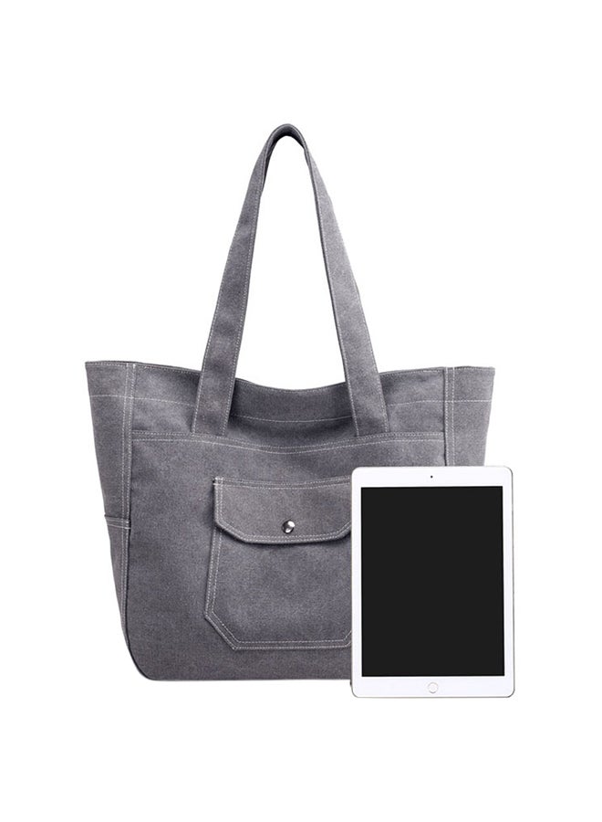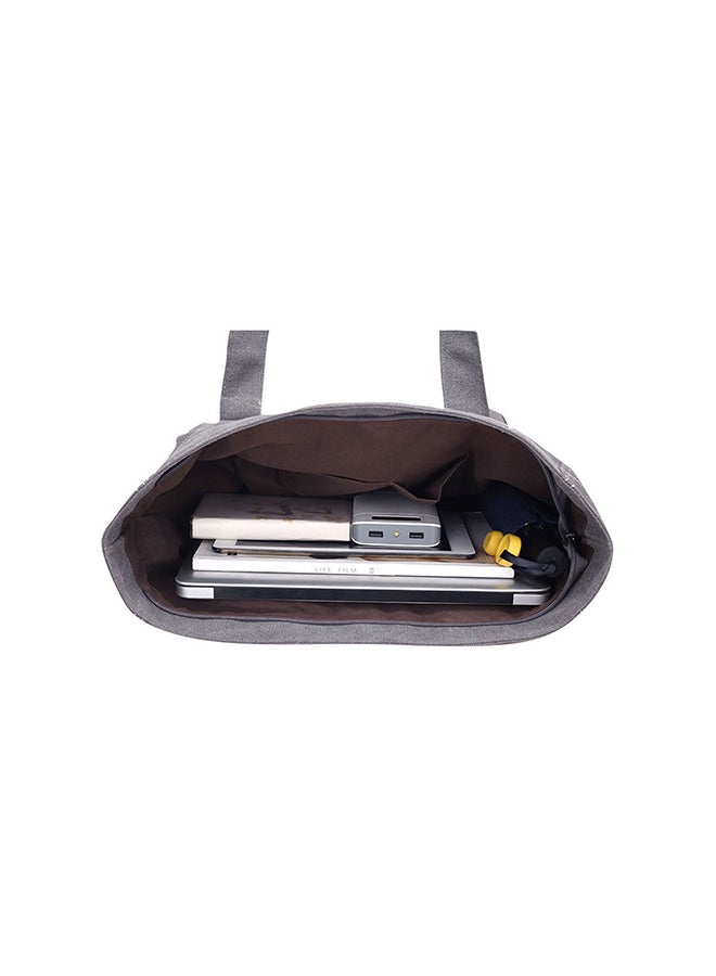 Grey Shoulder Bag with Zipper, Large Capacity and Multiple Pockets.