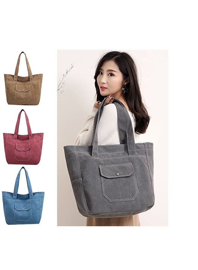 Solid Pockets Zipper High Large Capacity Multifunction Shoulder Bag Grey