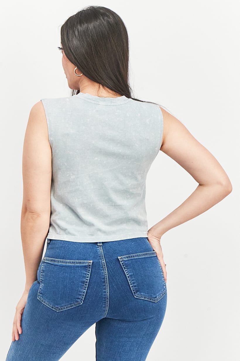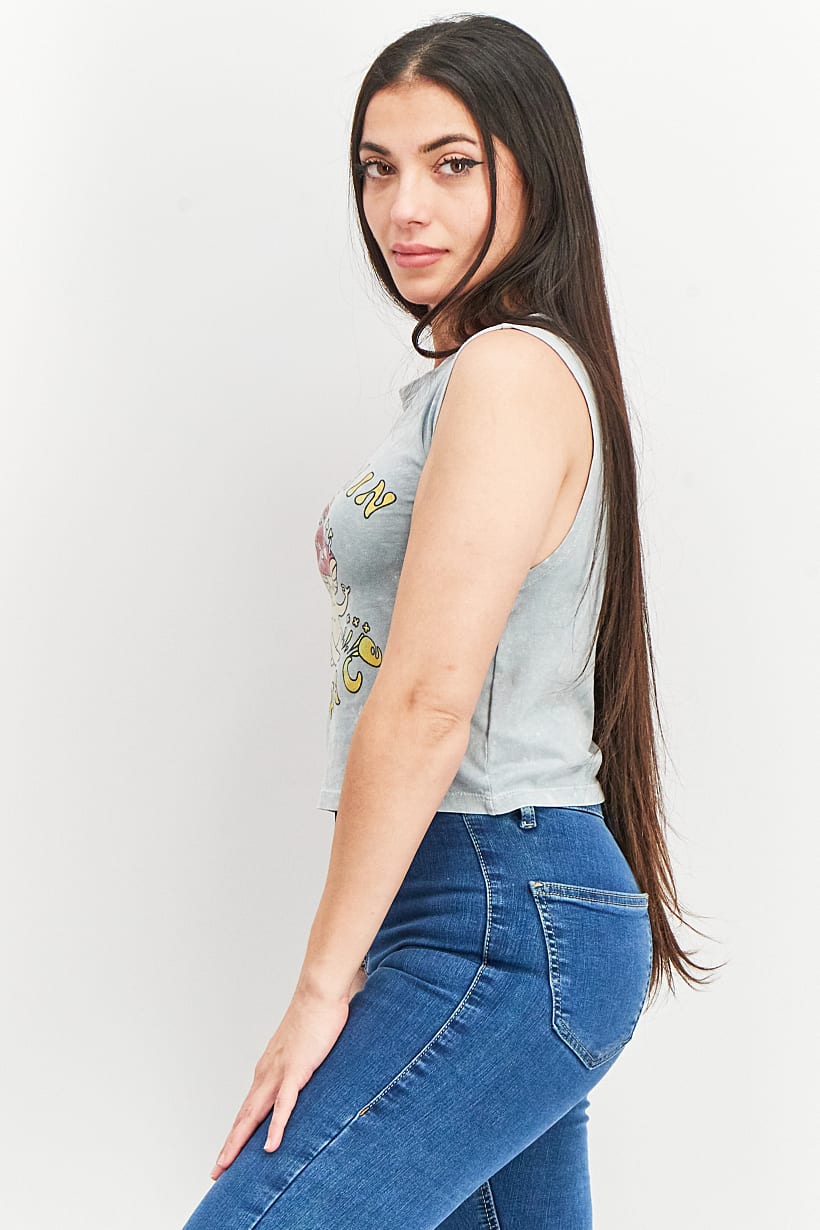 | nameOriginal | Women Round Neck Sleeveless Graphic Print Top, Grey |