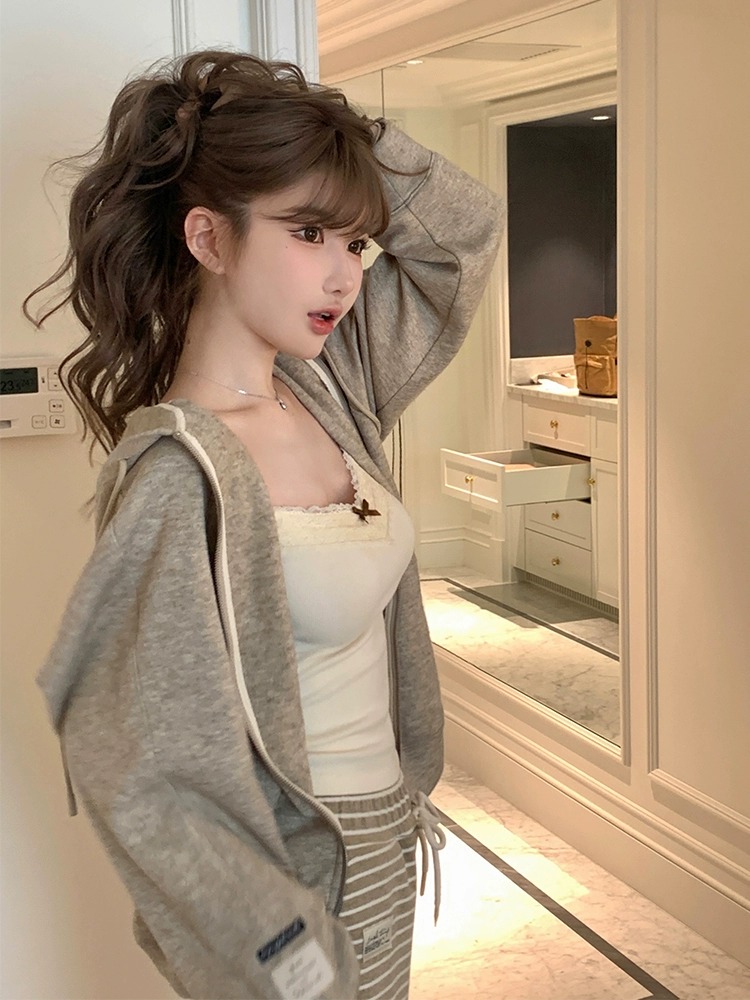 Grey Spice Girl Camisole Women’s Spring and Autumn 2024 New Lace Lace Outer Wear Beautiful Back Inner Short Top