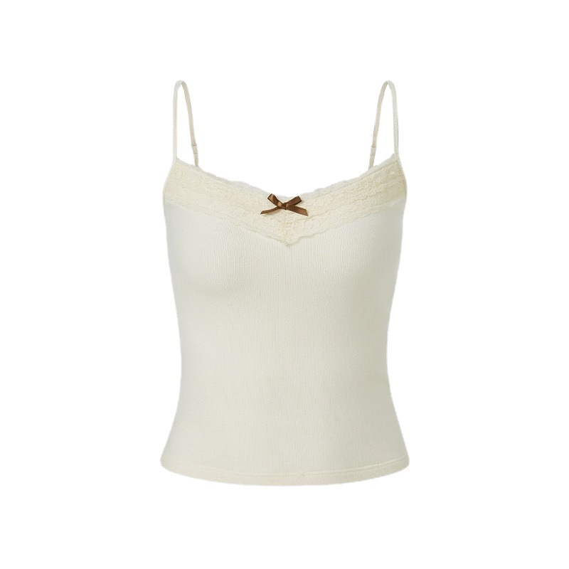 Grey Spice Girl Camisole Women's Spring and Autumn 2024 New Lace Lace Outer Wear Beautiful Back Inner Short Top