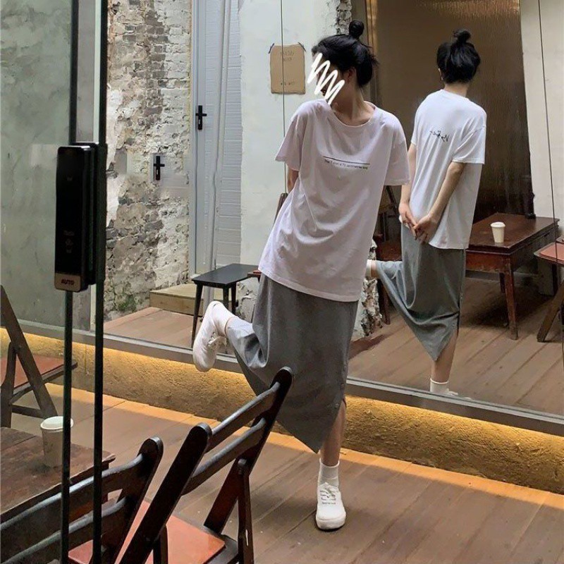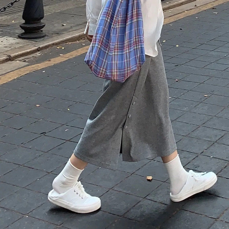 Grey Split Skirt Women's Mid-length 2024 Autumn New High Waist Design Sense Niche All-match Straight Skirt