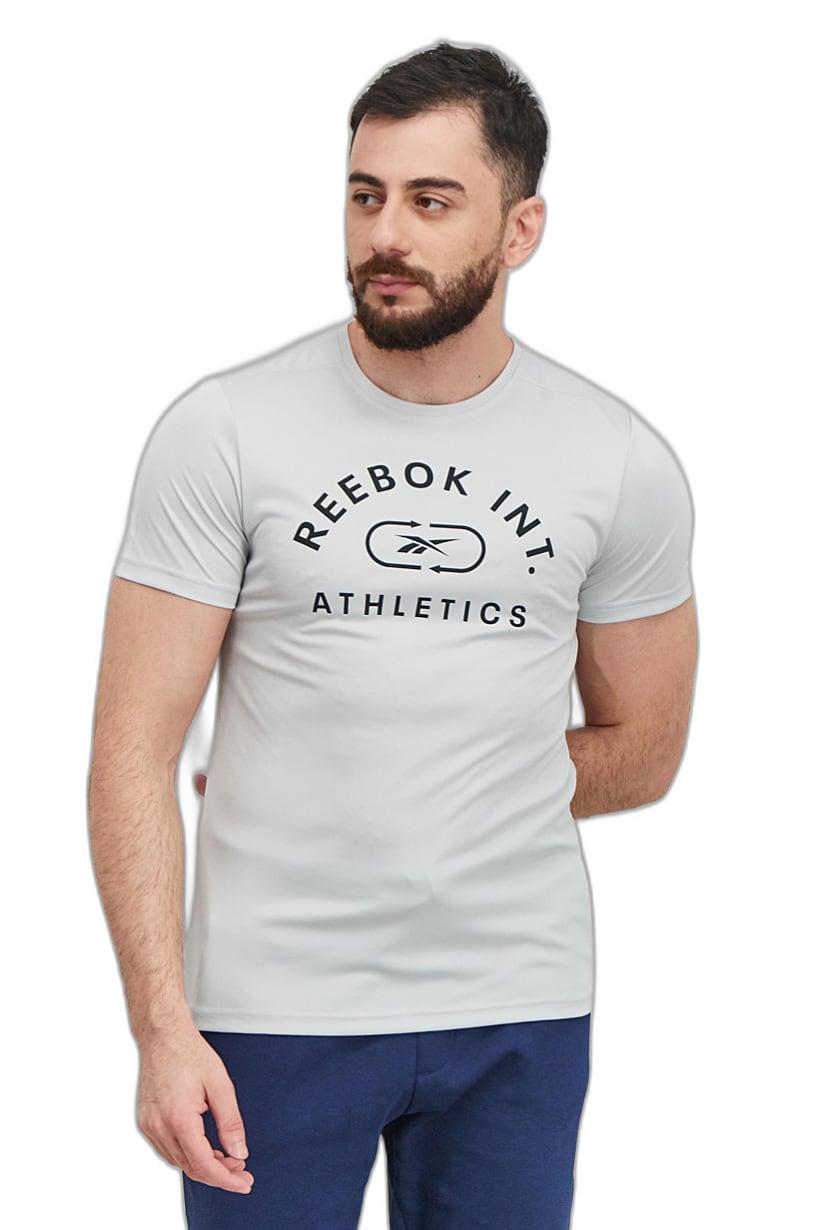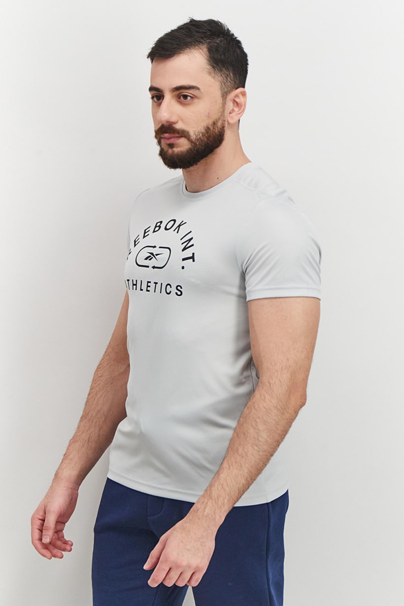 Grey Sport Fit Graphic T-shirt for Men’s Workout with Short Sleeves.
