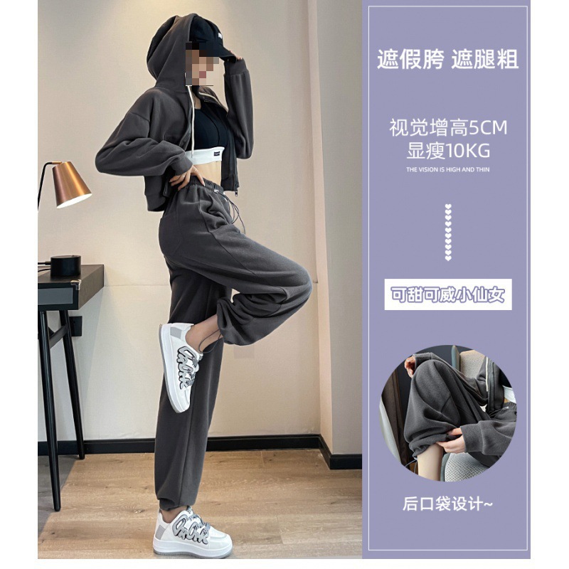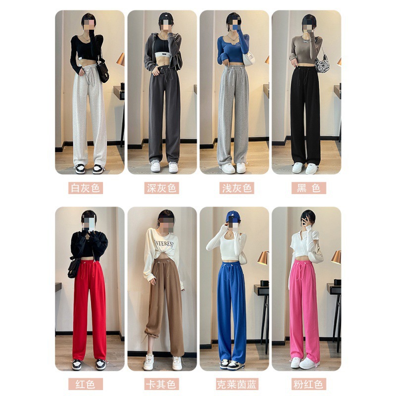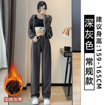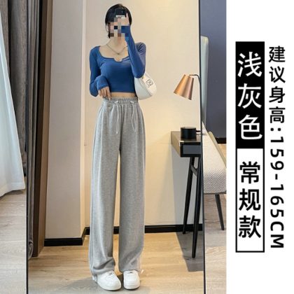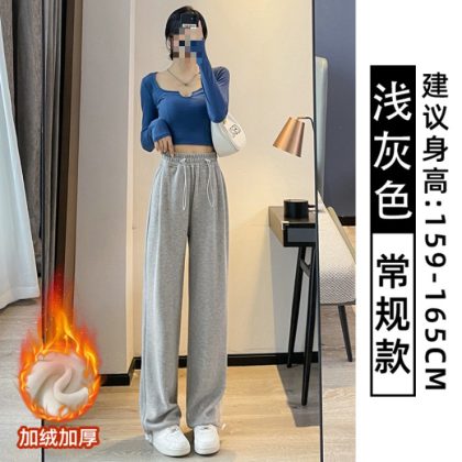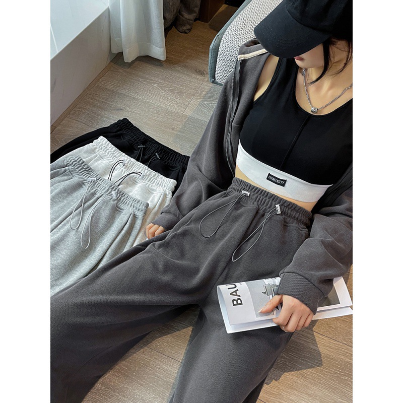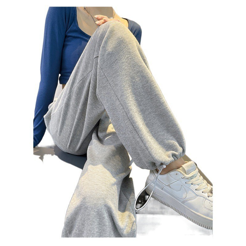 | nameOriginal | Grey Sports Pants Women's Spring and Autumn Loose Straight American Style Casual fleece-lined Sweatpants Slimming Small Wide Leg Pants |