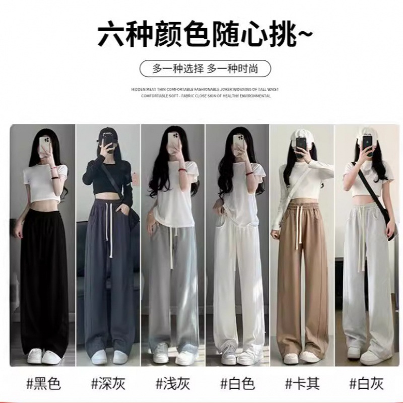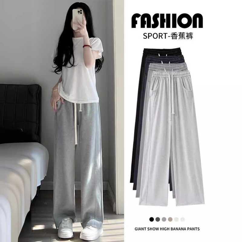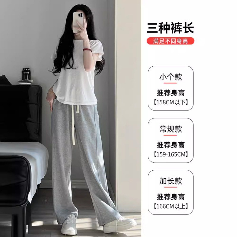 | nameOriginal | Grey Sports Pants Women's Summer 2024 New Thin Casual Straight Wide Leg Pants High Waist Draping Small Sweatpants |