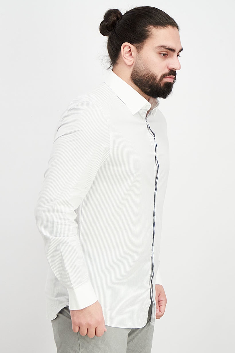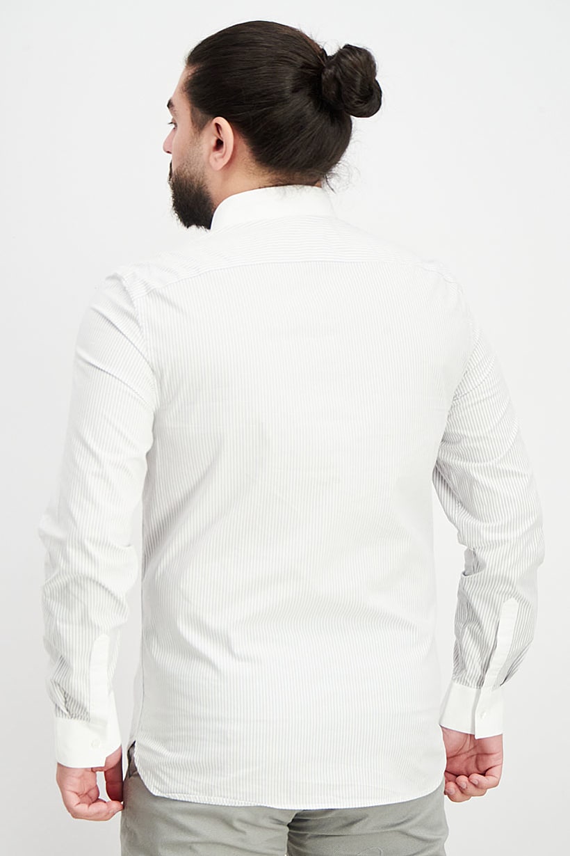 Men Clothing, Casual Shirts, men slim fit stripe long sleeve casual shirt grey