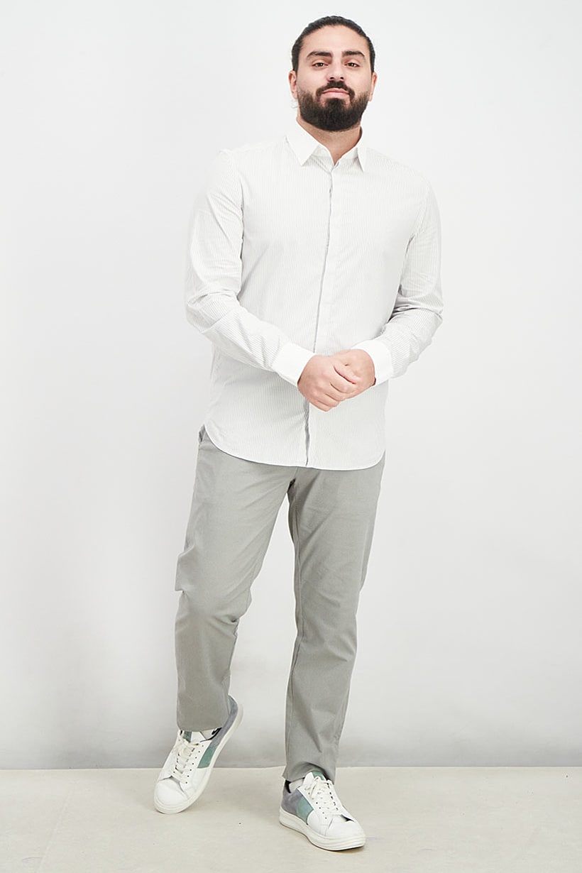Grey Stripe Long Sleeve Casual Shirt for Men with Slim Fit.