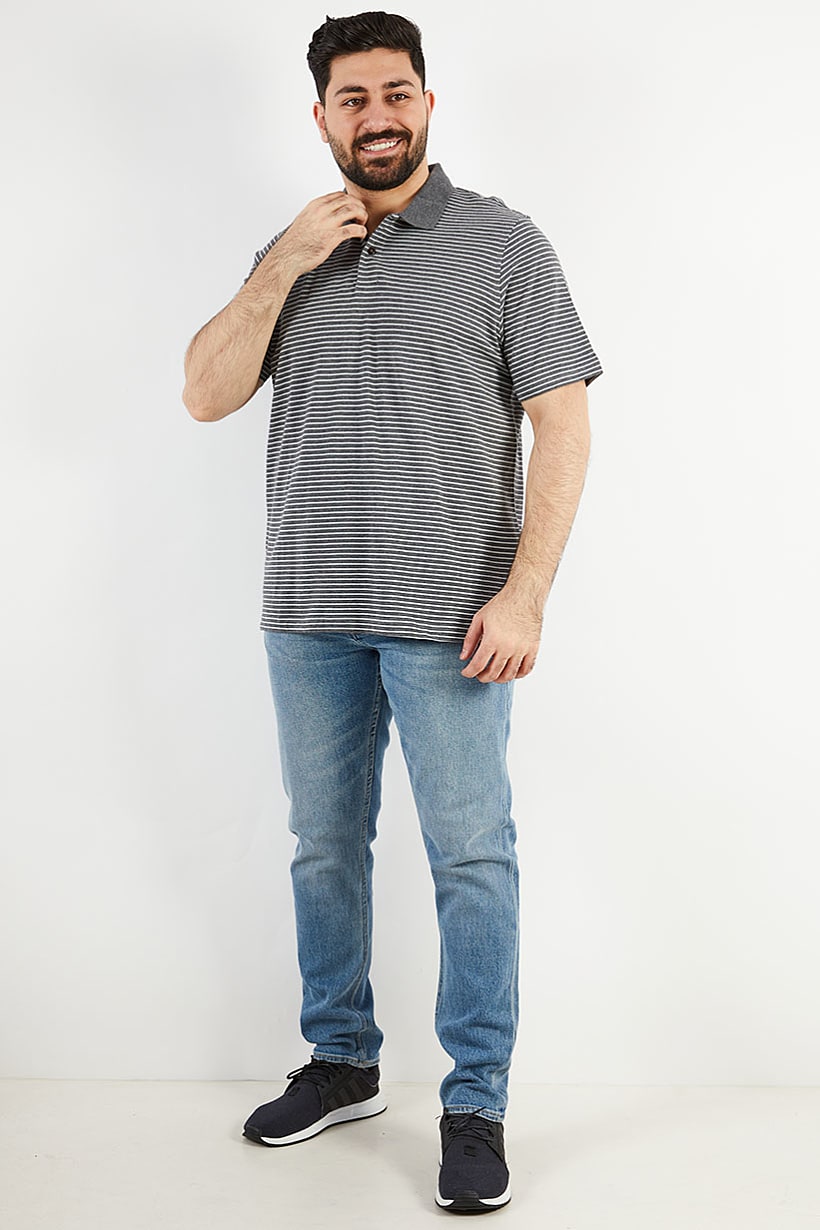 Men Clothing, Polo Shirts, men regular fit short sleeve stripe polo shirt grey
