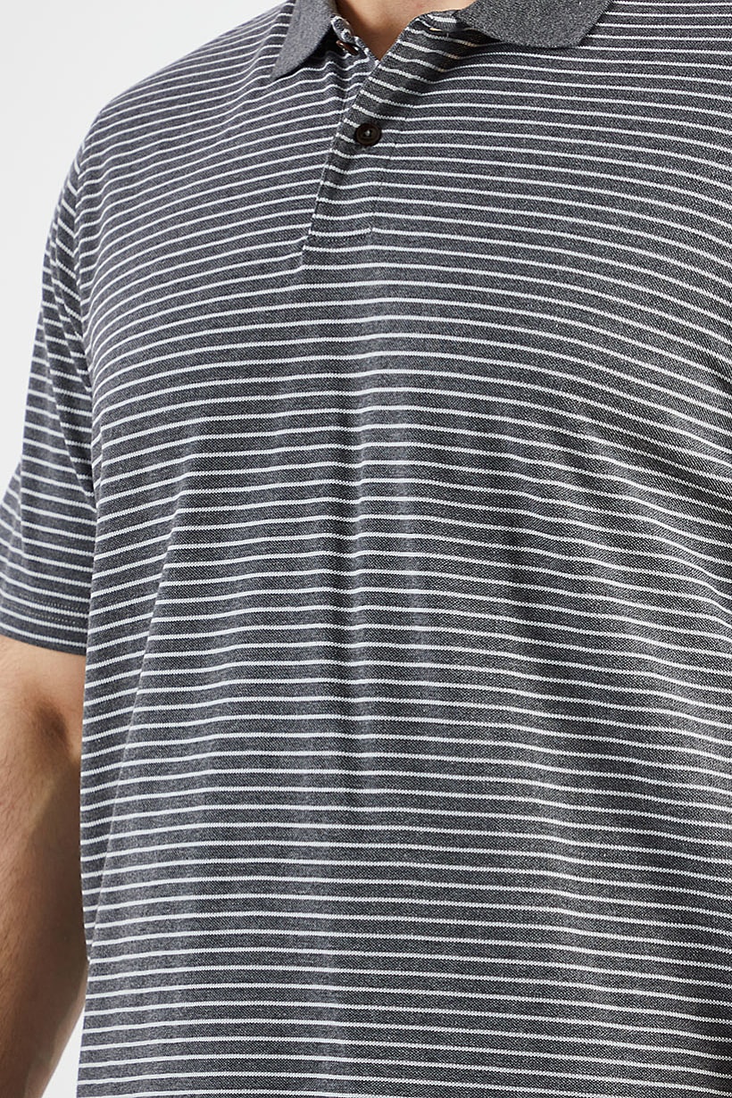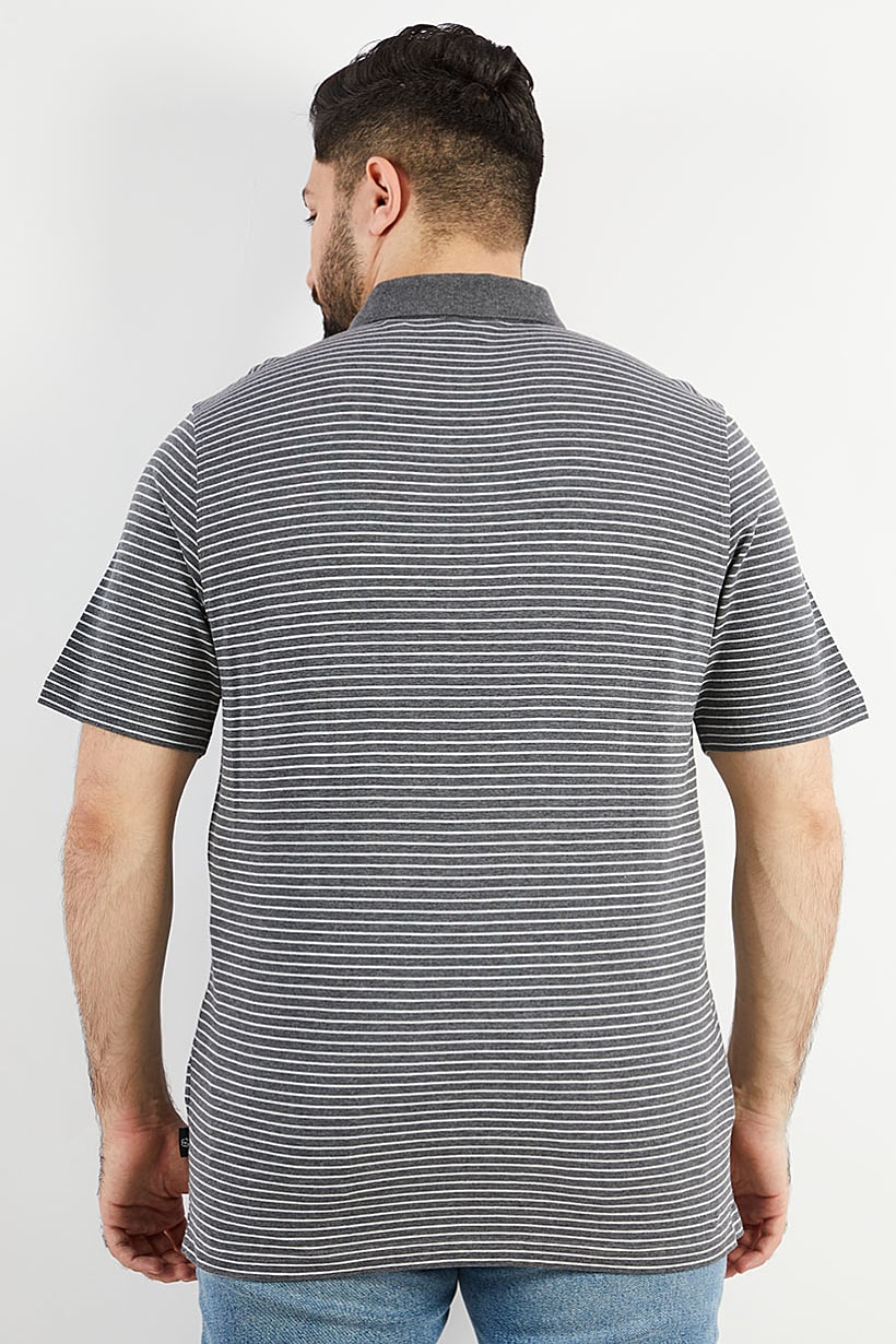 Grey Stripe Polo Shirt for Men with Regular Fit and Short Sleeves.