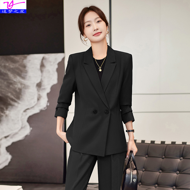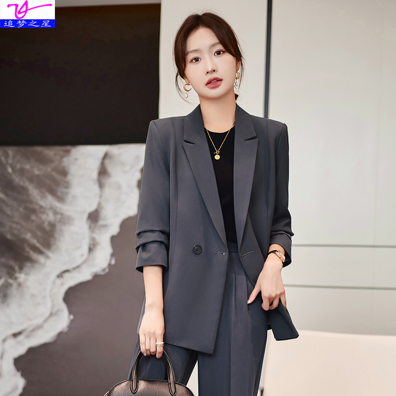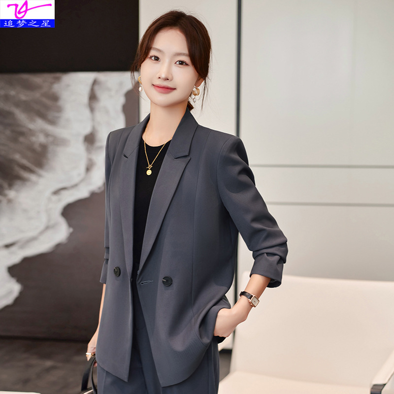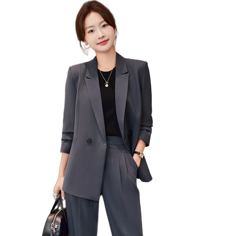 | nameOriginal | Grey Suit Jacket Women's Spring and Autumn High-end Sense Double-button Suit Mid-length Professional Wear Temperament Manager Work Clothes |