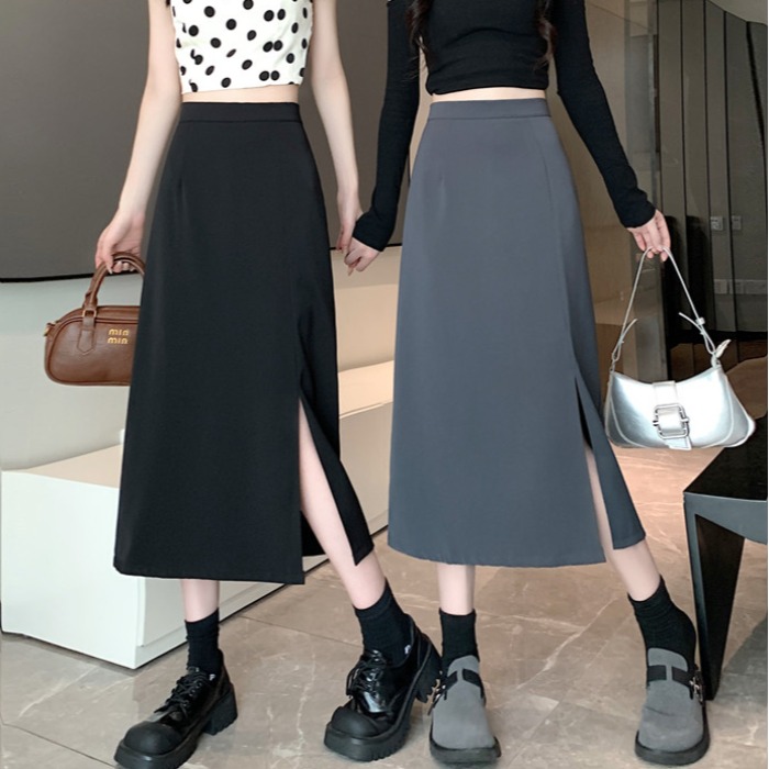 | nameOriginal | Grey Suit Skirt Women's Summer 2024 New Arrival High Waist All-Match A- Line Skirt Split Mid-Length Skirt |