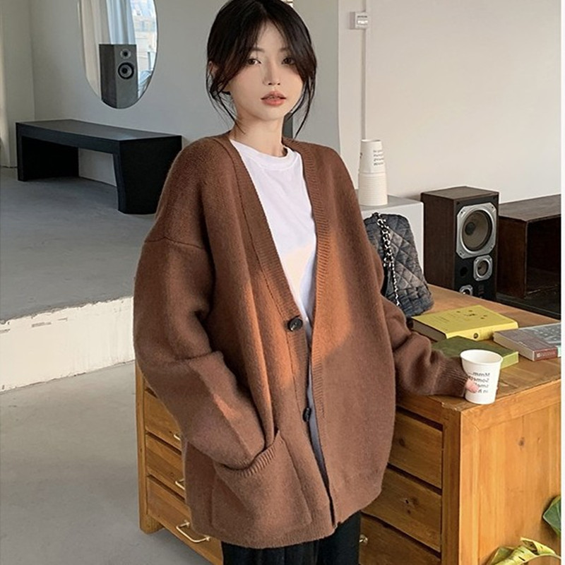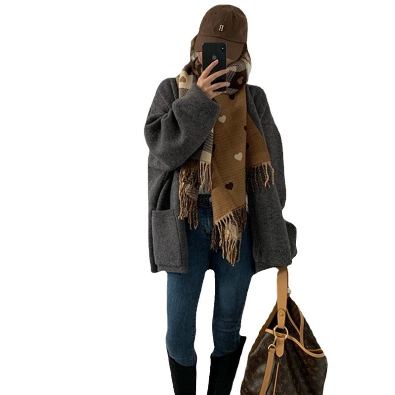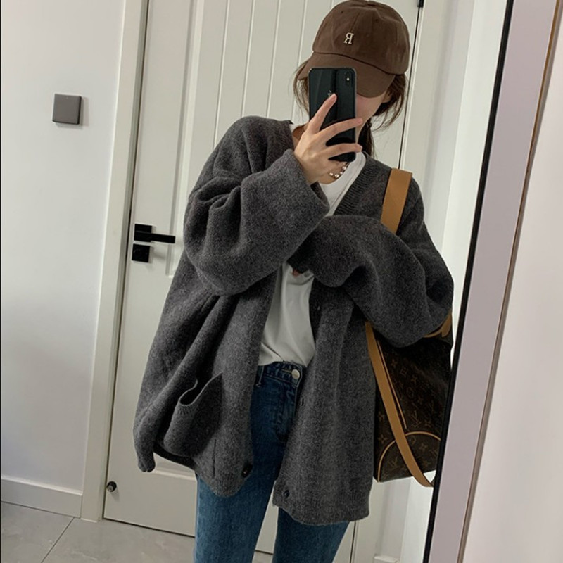 | nameOriginal | Grey Sweater Cardigan Women's Design Sense Niche Petite 2022 Autumn Lazy Style V-Neck Knitted Soft Waxy Jacket |